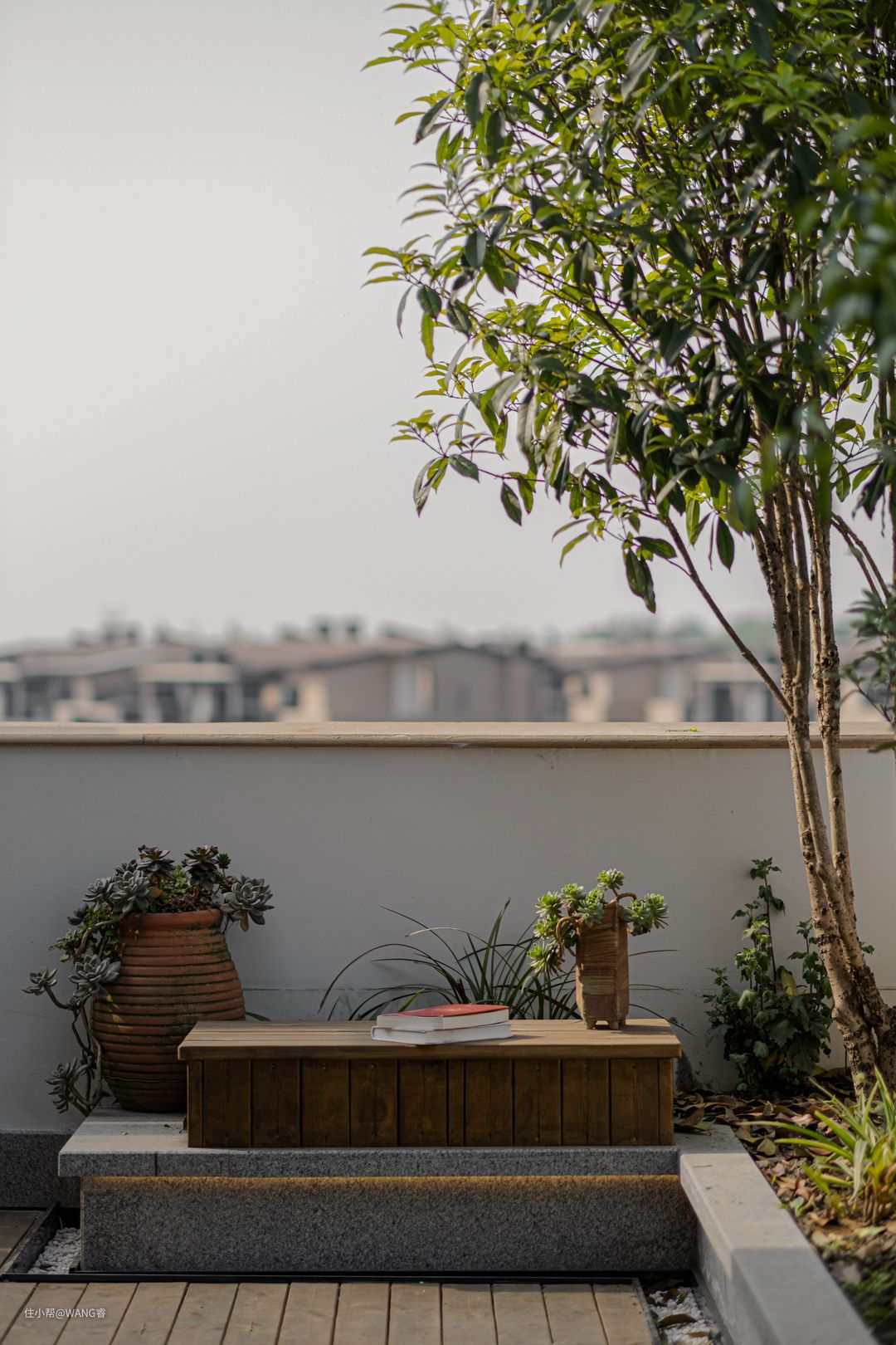 从书房出去是另外的小花园,地面铺设简单防腐木,耐潮耐造.