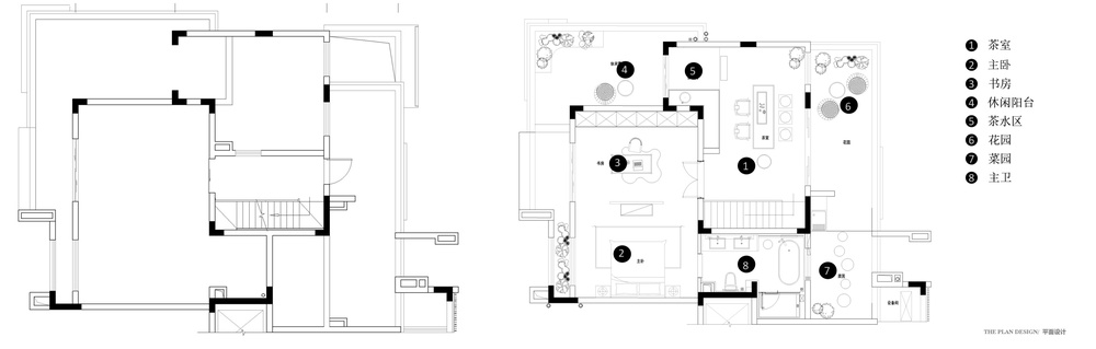 整体花台延至到茶室门外,且在下方做了灯带与小石子,为空间增加细节和氛围,