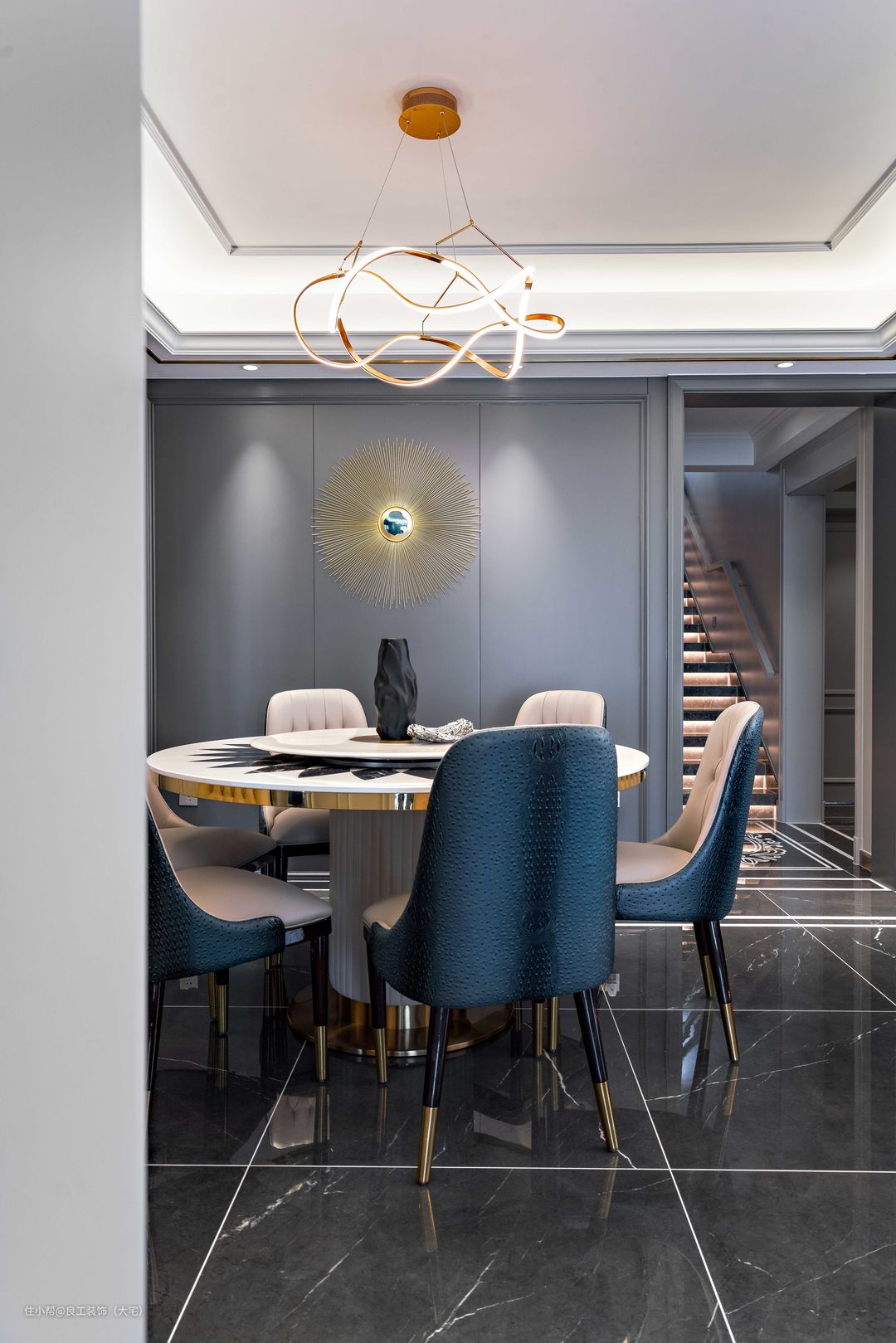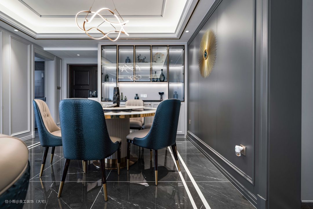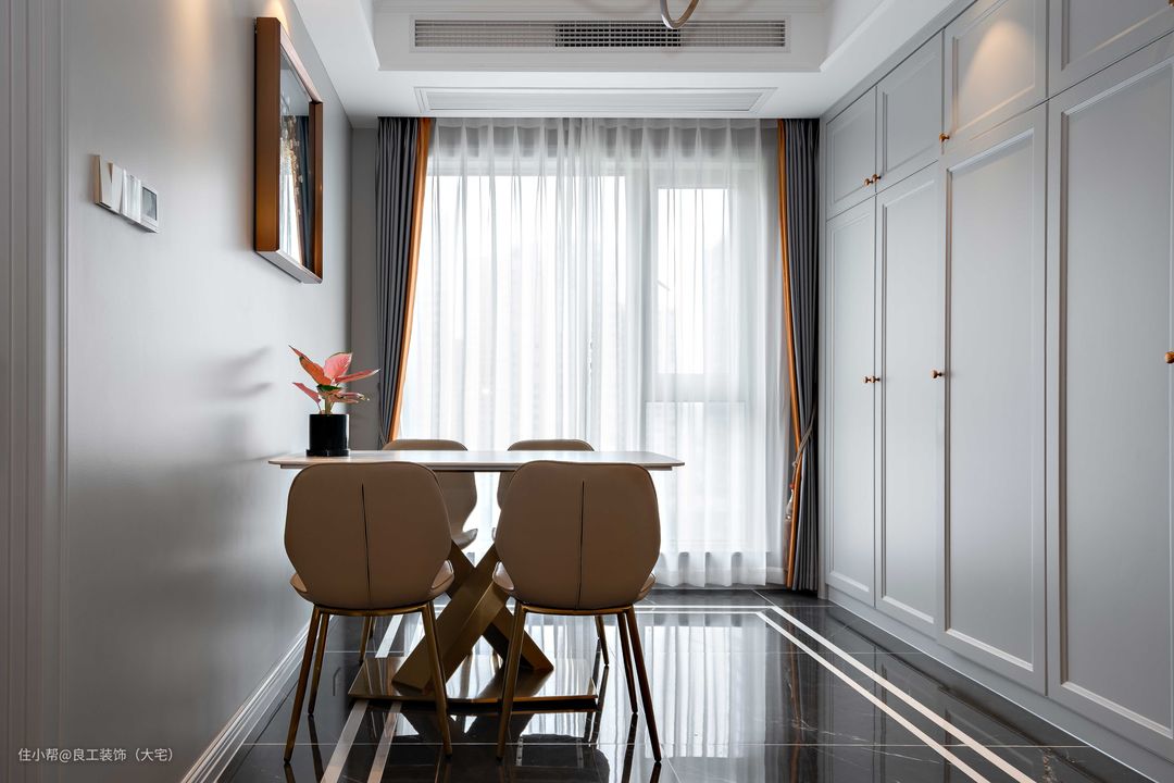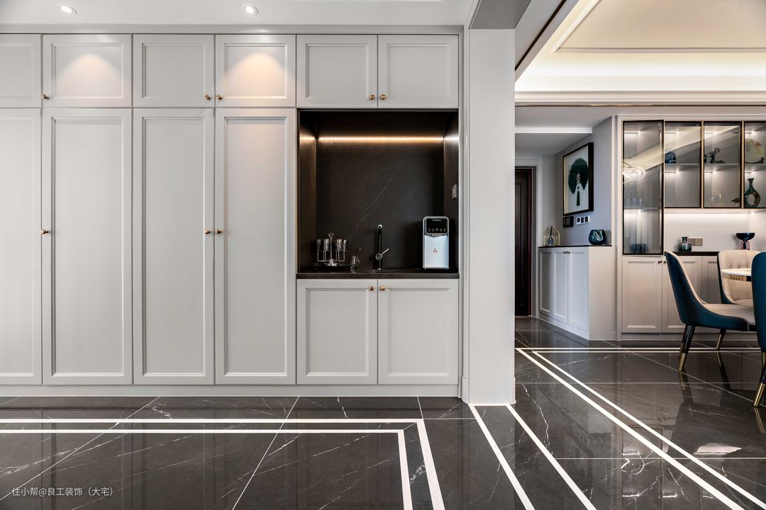 传统美式专注的是沉稳内敛,而加入轻奢元素,就能达到一种低调中显奢华,优雅中显时尚之感,这也是美式轻奢风的精髓所在,正好符合本案业主对于简而有味的品质生活的期许。