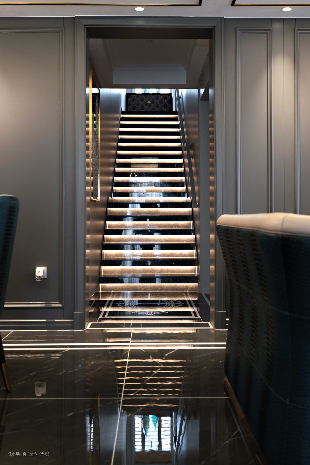 沿扶梯而上,便是设于二楼的卧室,每个空间都方正从容。