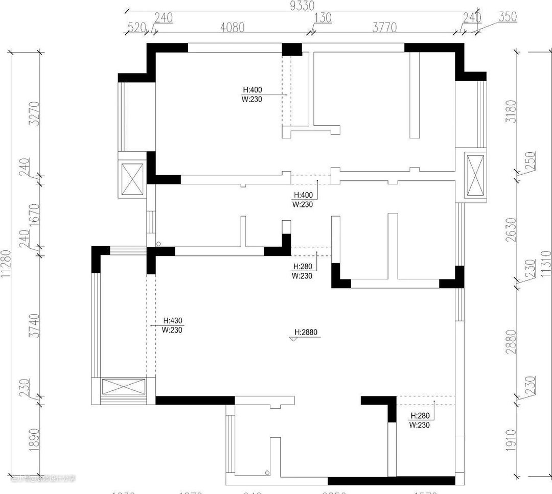 客厅望向餐厅视角,右侧是开放式厨房,门套上增加一个隐形的卷帘,方便客户在需要隔离油烟的时候使用。