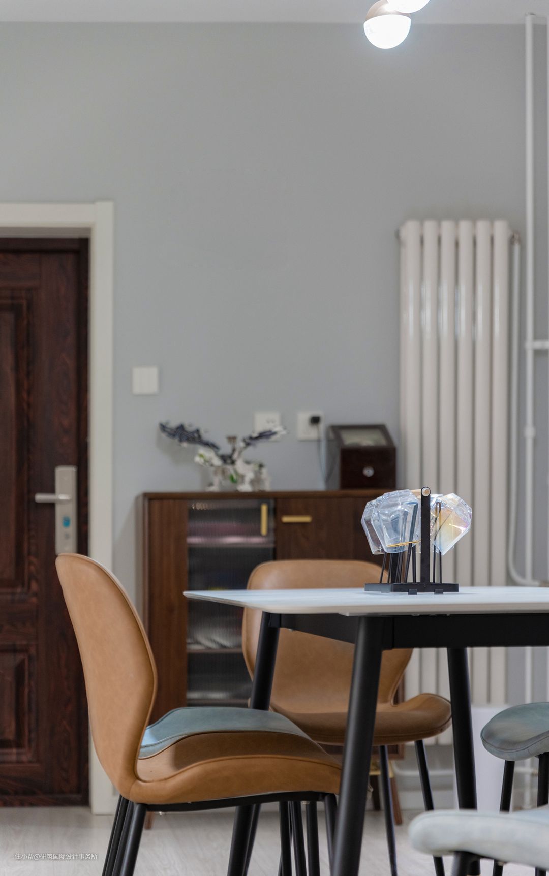 餐边柜上方墙面的装饰品立体又精致,十分吸睛,也成为一进门视线尽头的美丽端景。