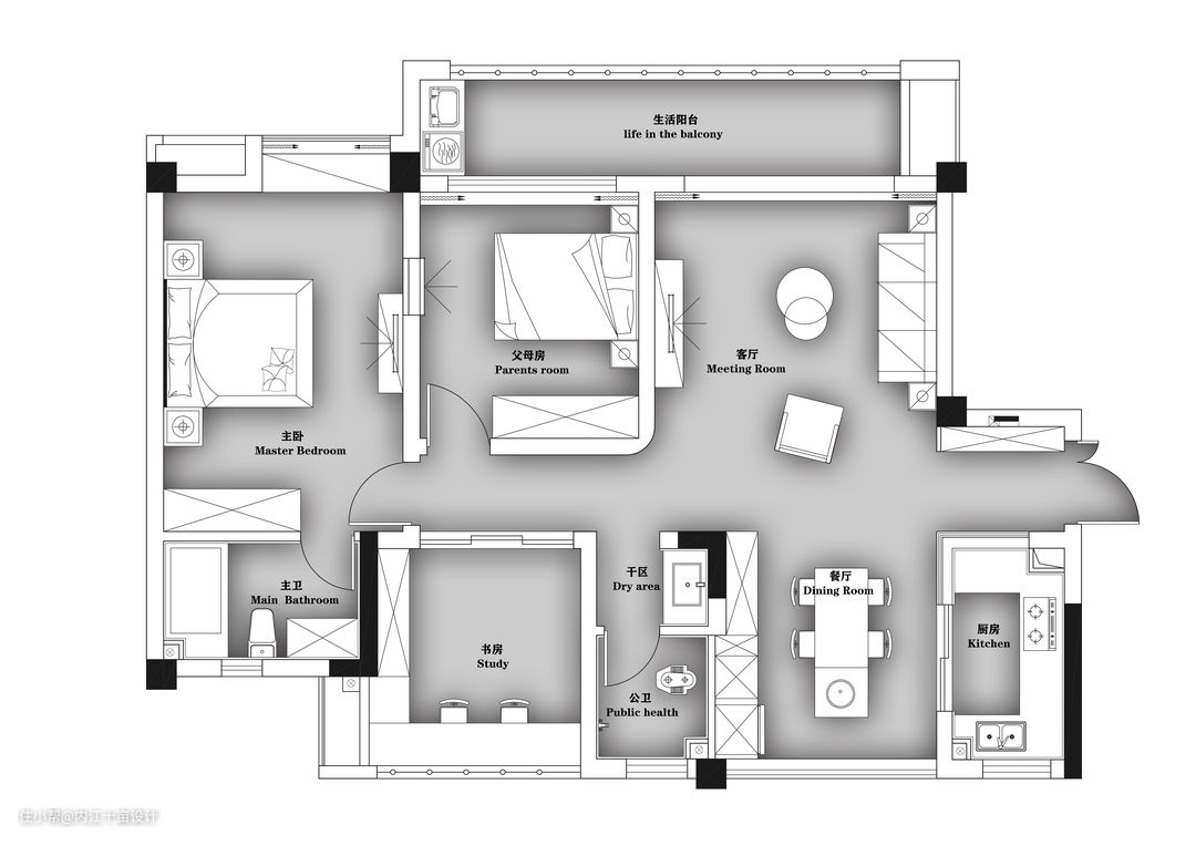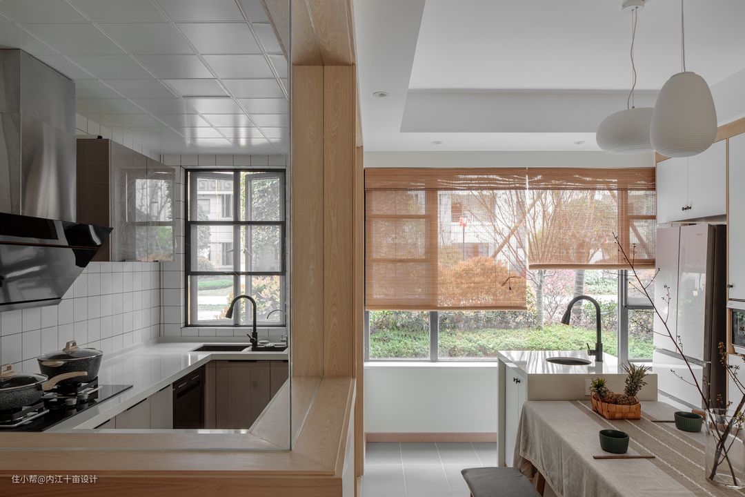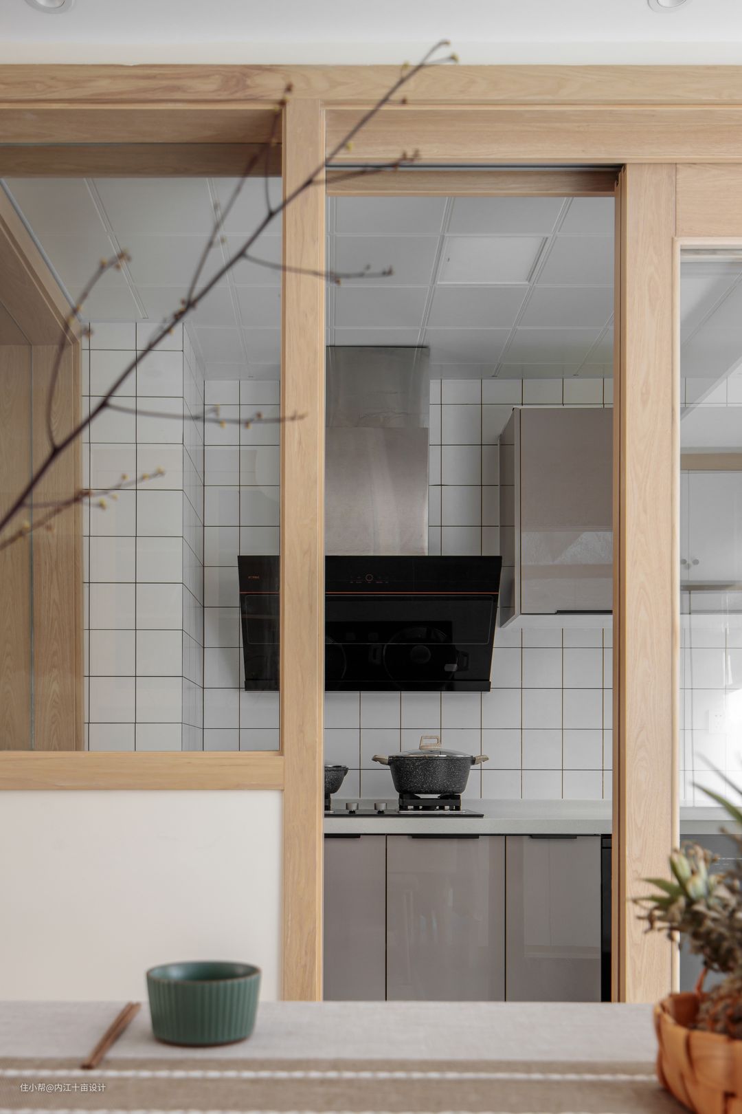 厨房局部隔墙采用玻璃取代,增强空间通透性