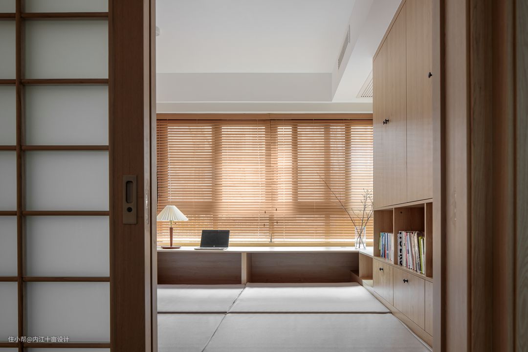 多功能房定制榻榻米集收纳柜与书桌一体,兼具学习、休息、收纳等功能,实现一房多用