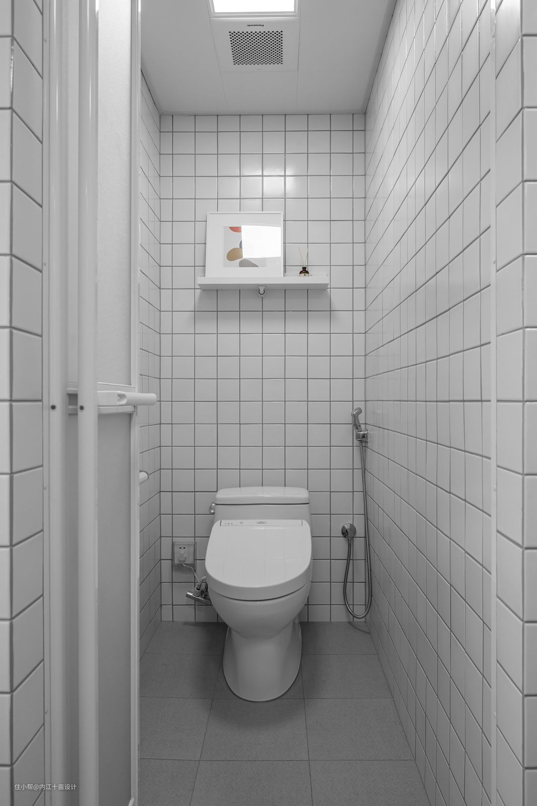 坐便区用折叠门隔断,一旁配备喷枪,方便清洁卫生