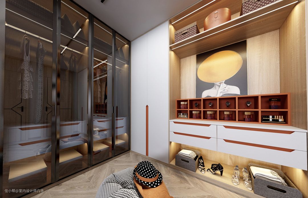 衣帽间怎么打造?在现代风格中怎么把握材质搭配?大理石,护墙板,玻璃类材质在现代风格中怎么运用