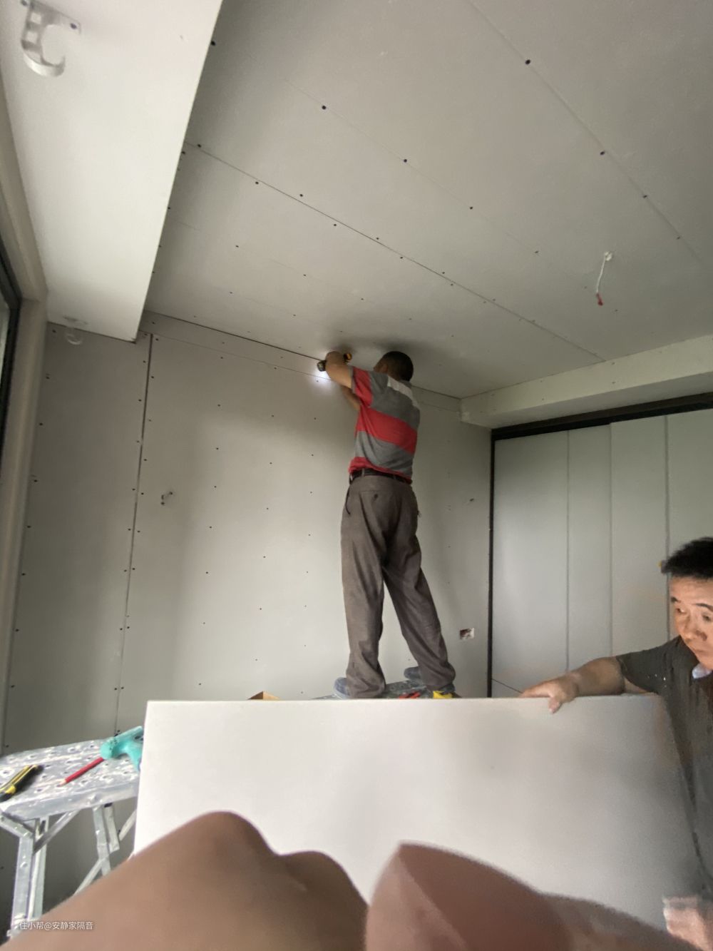 这是一套精装房,三室两厅,面积109,一家三口都是喜欢安静的人,之前住家最大的痛点就是楼上噪音太吵和各种邻里问题,这次虽然买的是精装修,但还是邀请我们进行专业家庭隔音改造,因为预算有限,只做三个卧室的局部隔音改造,因为,业主一家人睡眠不太好,害怕楼上噪音影响自己和家人,所以把卧室做了一个专业的隔音吊顶和隔音墙体,以保障每晚的睡眠不被打扰。 1.户型和格局不需要变更。 2.仅仅三个卧室进行吊顶和四面墙体的隔音改造。 3.工期是一周,5人施工小组。 4.中央空调、定制家具是开发商送的。 5.隔音工程包工包料,三个卧室总共30平左右,声学材料人工及各种杂费一共5万元整。 5.全部使用符合家装环保的声学材料,其中隔音毡做双层铺装,强化隔音效果。
