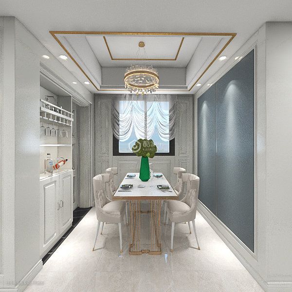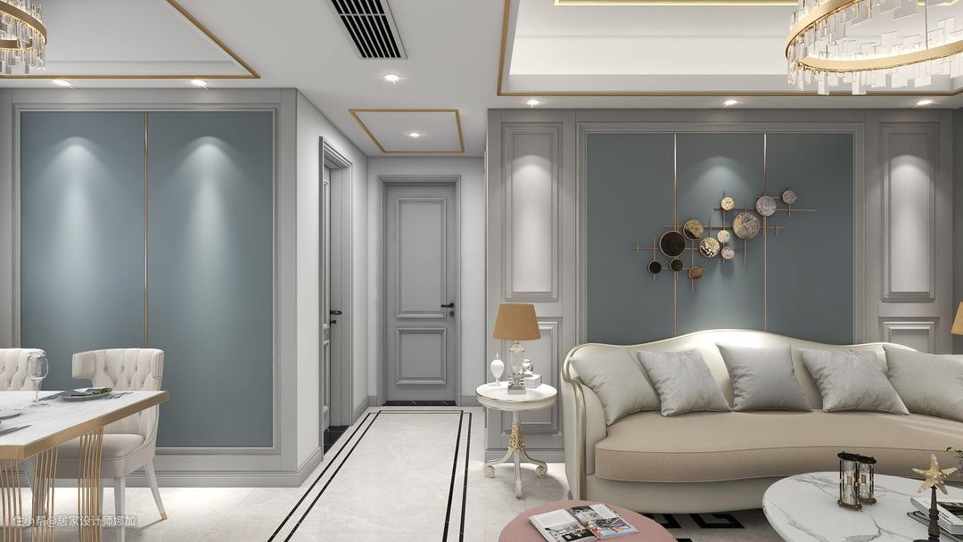 简欧蓝色墙板客餐厅风格