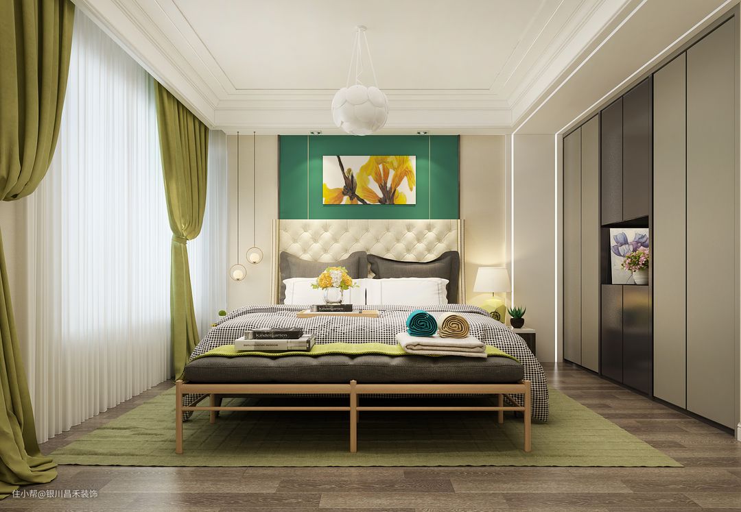 卧室是空灵而浪漫的,极简原木大床与米色高靠背,带来极度的舒适感,打造完美睡眠圈,清爽的绿色尤其令人心旷神怡。