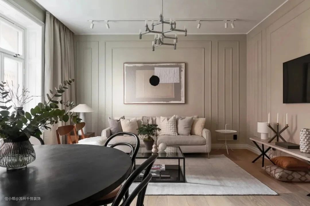 本套案例总面积为80m²,以米色,灰色,黑色为主打造现代北欧舒适生活