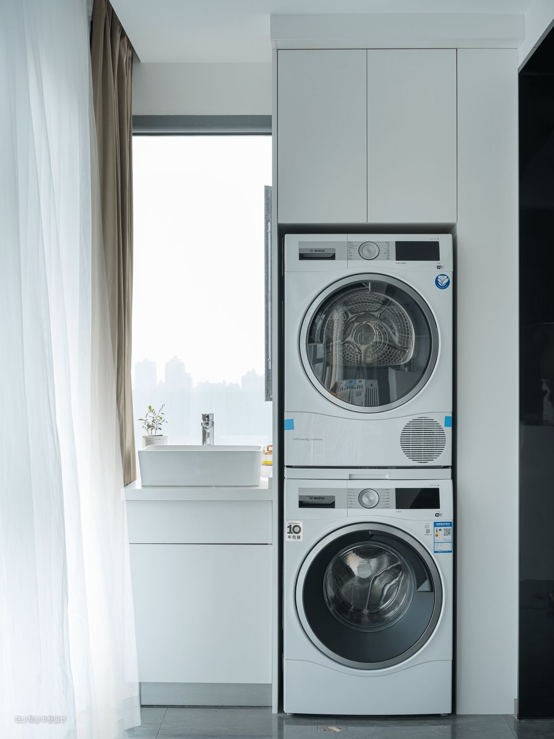 上下错落放置的烘干机和洗衣机可以大大的节省空间。