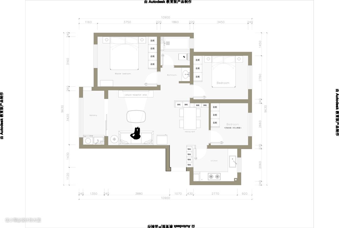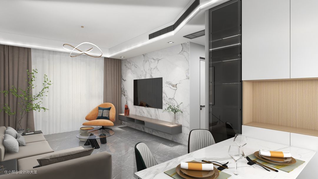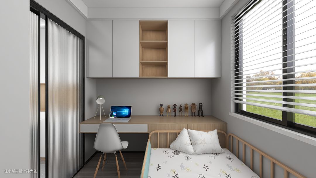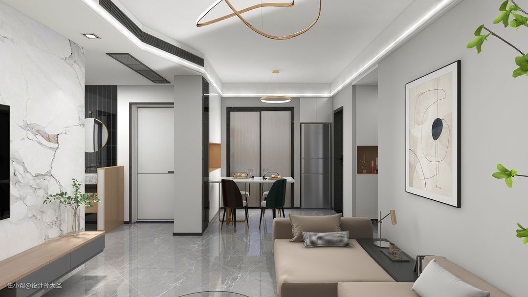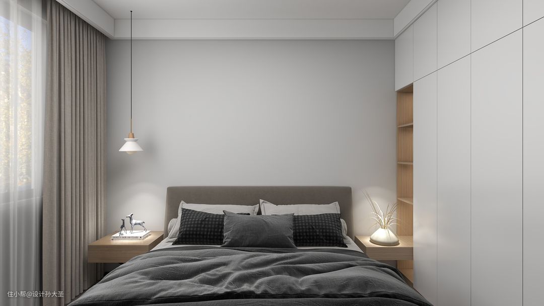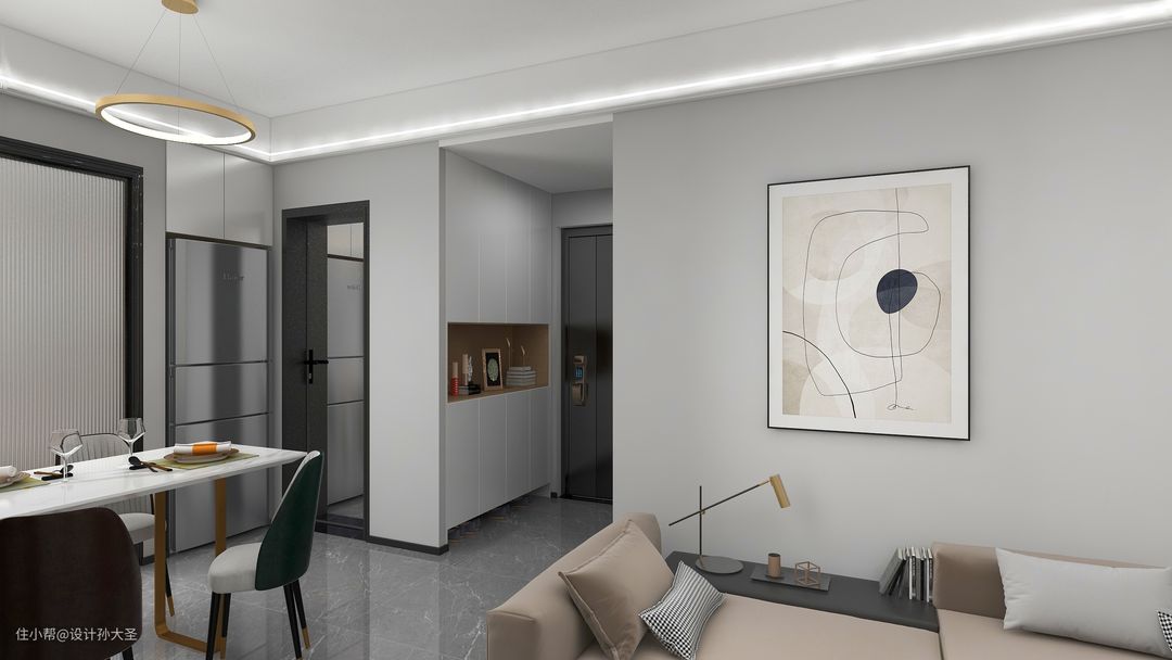 原始户型为小三房,夫妻两带个2岁的宝宝居住,父母偶尔会过来住一段时间,所以面积最小的北次卧会考虑父母来了之后小孩睡最小的房间,三个卧室就得都具备居住功能,入户位置本身没有鞋柜的位置,方案里面将入户右侧非承重墙体拆除以后做了一个内嵌的鞋柜,北次卧改成推拉门,因为居住概率不高,所以多考虑餐厅的采光通风。