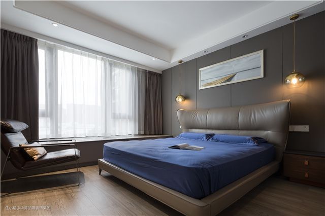 主卧是一个私人且隐秘的空间,但实质上其也是更能体现居者性格与品位的空间。主卧室呼应了整个风格,中性色和木色的广泛运用,带着灰度的配色,不管搭配冷色还是暖色都让人安心。微妙的视觉感受,让一切变得很和谐,宁净自然。