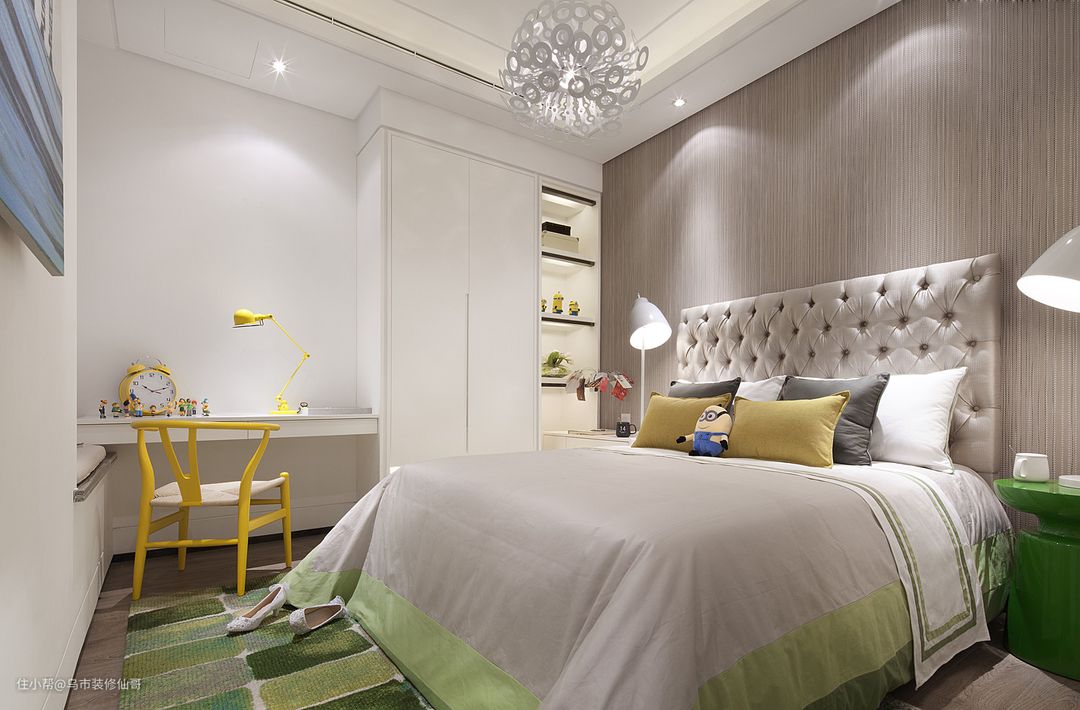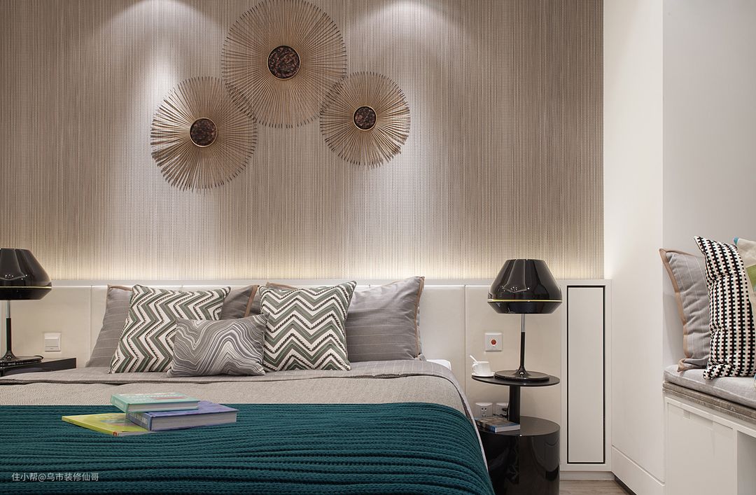 卧室背景墙与客餐厅背景墙颜色相呼应。
