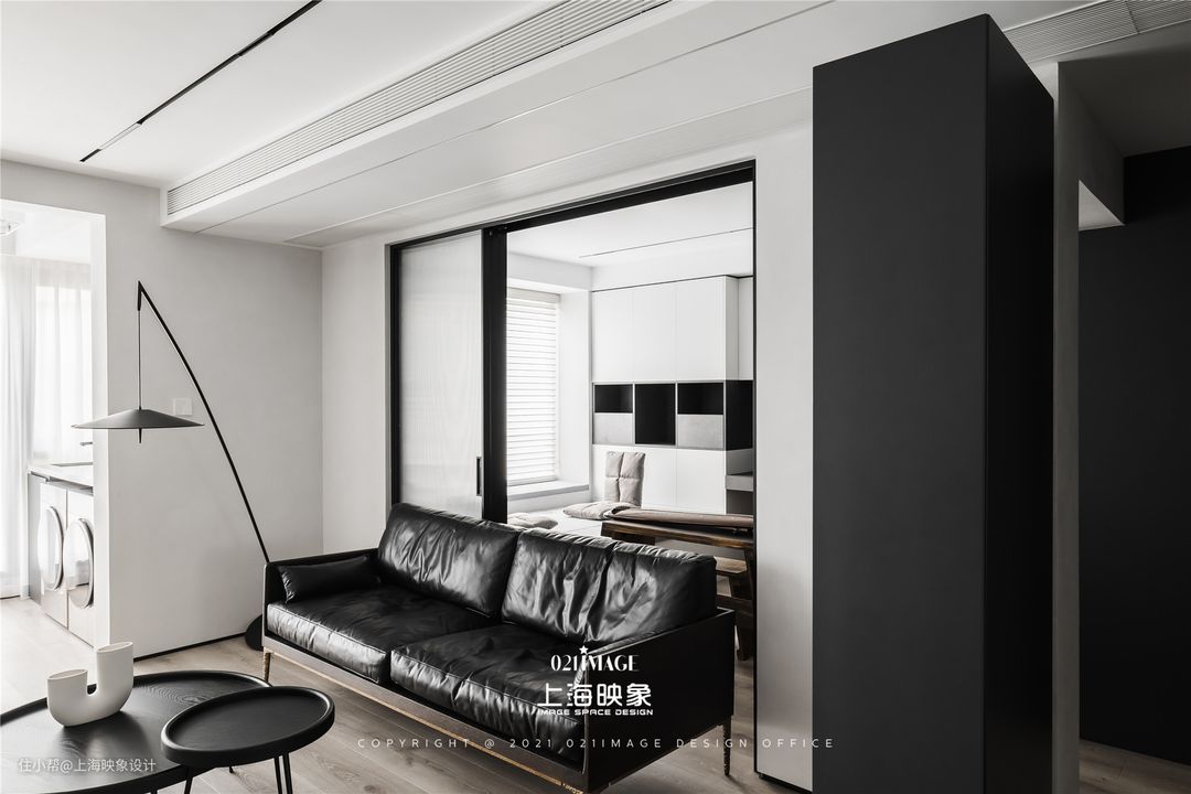 一扇玻璃移门,打通了客厅和书房的界限,进一步的让沙发在客厅中的位置,获得更大的自由。