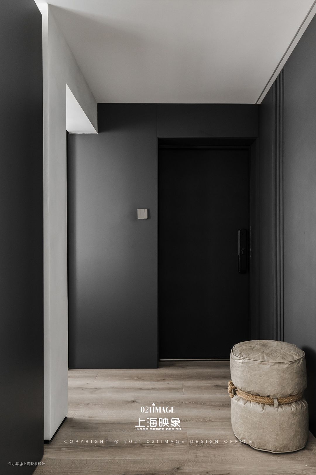 好的设计作品,设计语言是统一的,像是文学作品的主题和主线,贯穿在每个空间中。 黑白灰的色彩搭配、简单干练的造型线条,在玄关空间中就「预告」了全屋的风格基调。