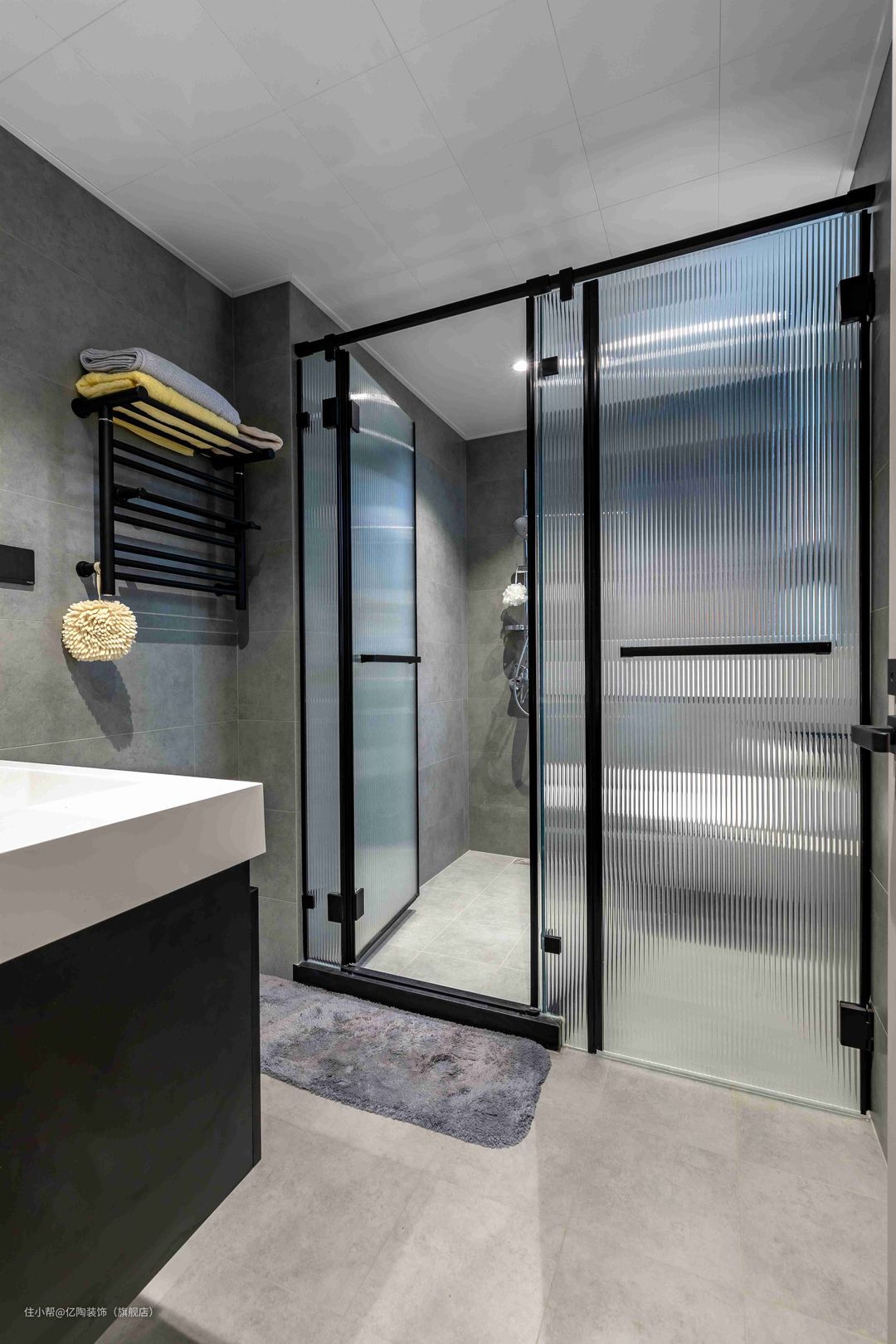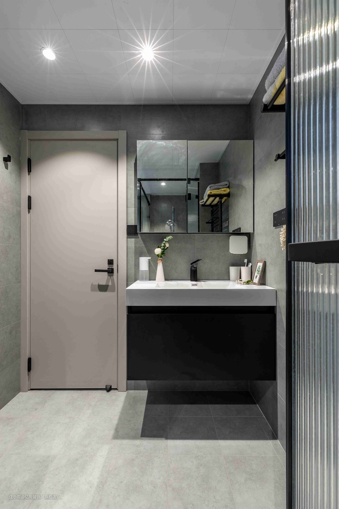 灰色系的卫生间用米白色、白色来点缀,体现空间的干练整洁,低调中给人沉稳的力量。
