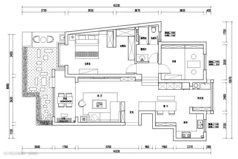 据业主的生活需求,以水泥灰+原木色相互搭载,满足工业风的纯粹干练时不失家的温馨舒适。 南北通透的户型,结合良好的采光环境,把客厅、茶室、餐厅、厨房、洗衣房设计在一条动线上,让活动空间充分地释放出来,构筑了一个开放式的生活空间。