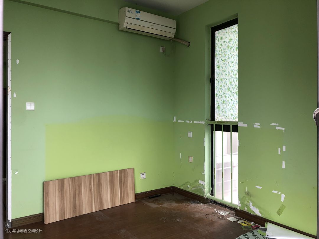 改造前色彩鲜艳,不符合卧室的特性,业主也不喜欢这个颜色,窗户能看到外机,观赏性差;改造后选用了业主最喜欢的黄色,降低饱和度,用百叶帘遮挡窗户。
