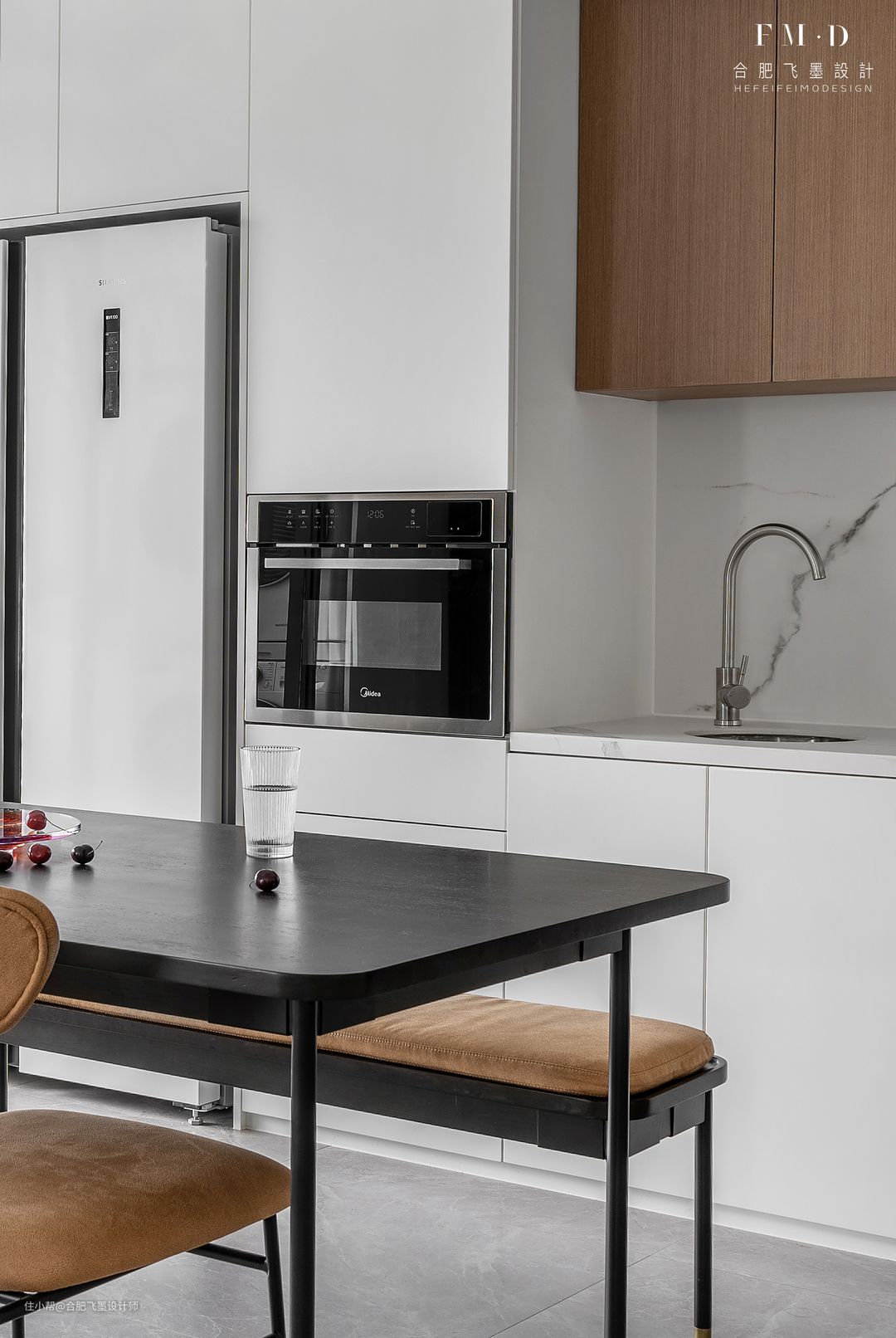 厨房只采用了简单的黑白灰配色,干净清爽易打理;高低台的设计符合人体工学,可缓解下厨时的疲惫感,从细节处,增加舒适。