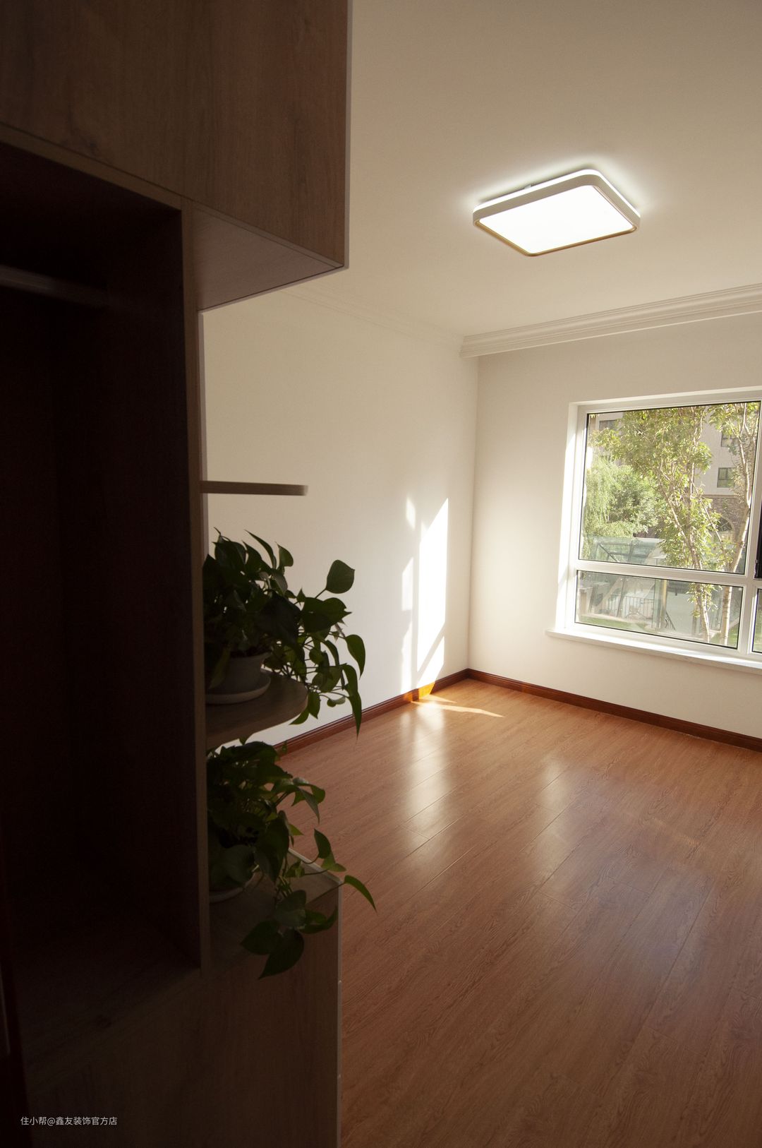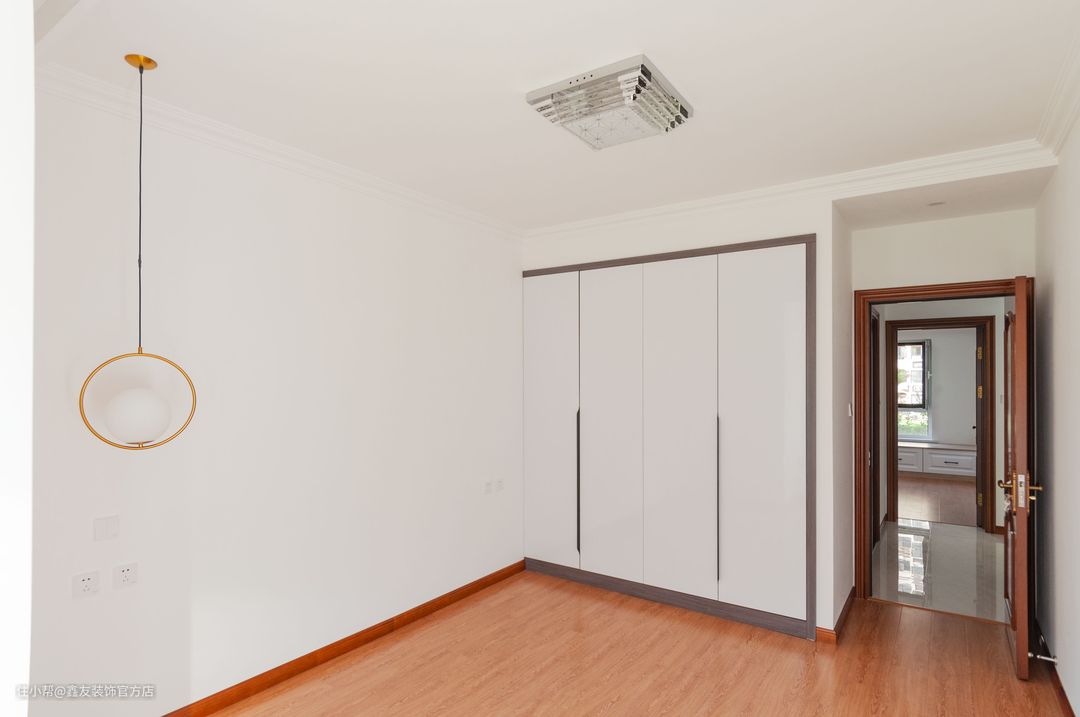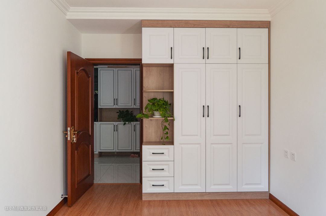 次卧由老人居住,保持整房风格统一的定制白色柜体,满足老人的日常收纳。