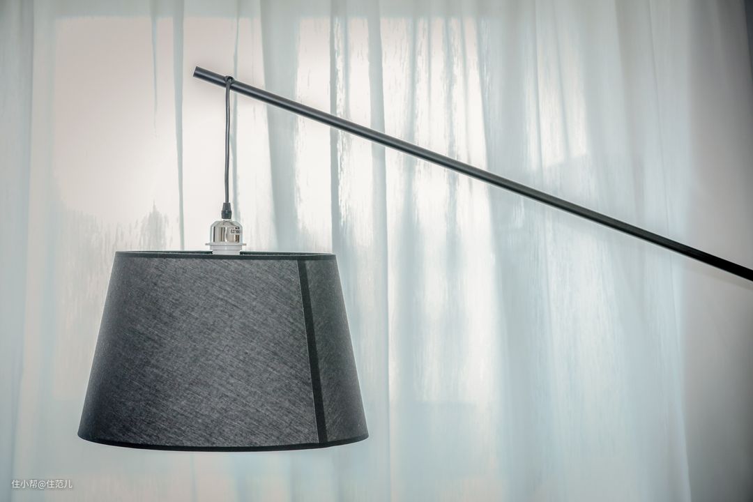 北欧表情浅驼色的科技布沙发,坐深比较深,不管是躺着还是坐着都挺舒服。 最重要的一点是布料很适合有猫家庭,不用担心被挠坏,细腿设计也方便扫地机器人清洁。 黑色的钓鱼落地灯也是在北欧表情买的,打开之后,从布艺和PVC的灯罩能透出来温馨的暖光。