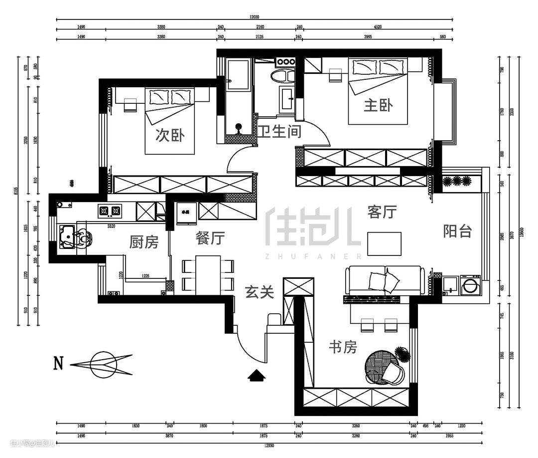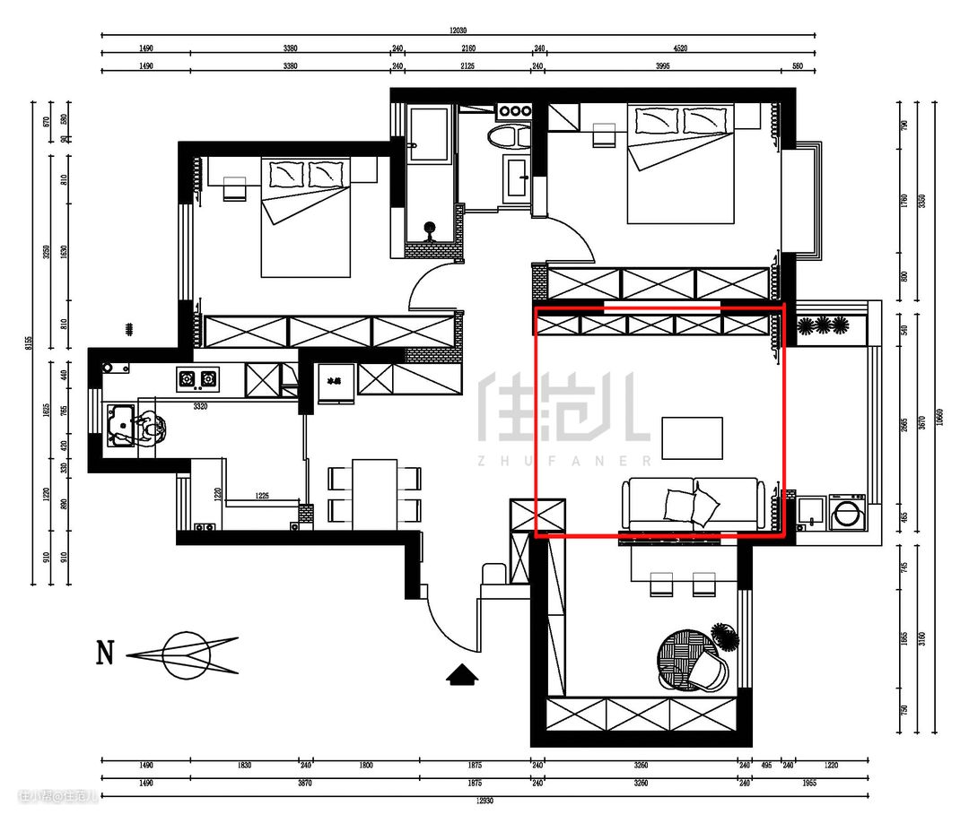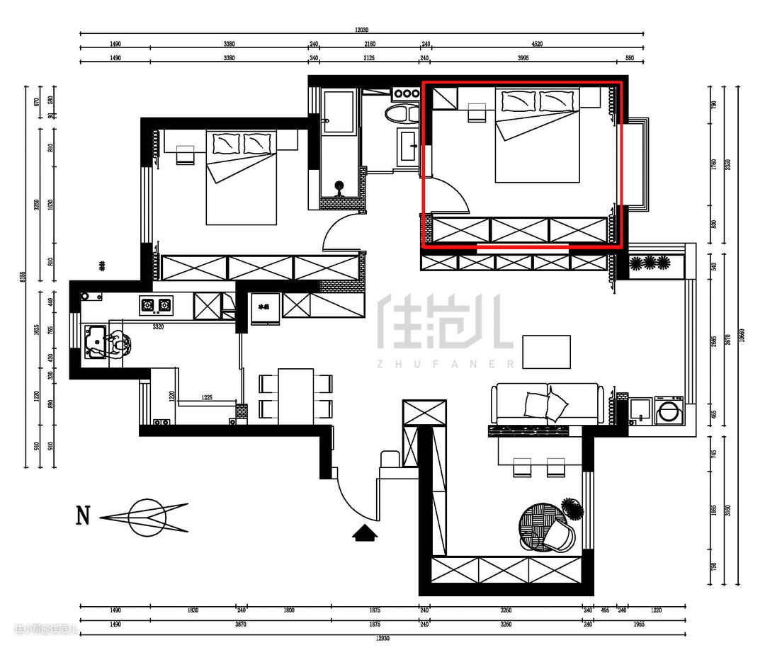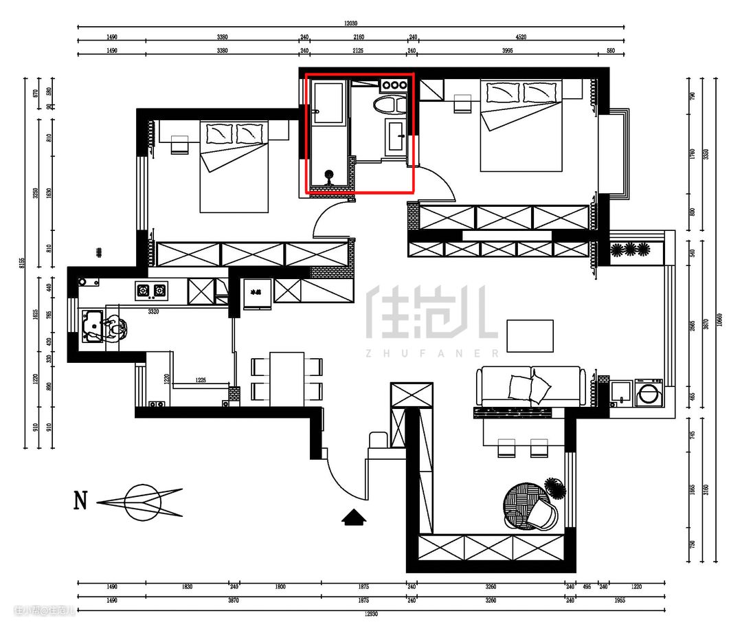 原始问题: • 一个次卧在动区,用作卧室不够安静; • 餐厅的空间太窄,可用作储物的墙面太短; • 从玄关到卧室的过道有2.16m宽,浪费空间; • 卫生间过于局促,布局不合理。