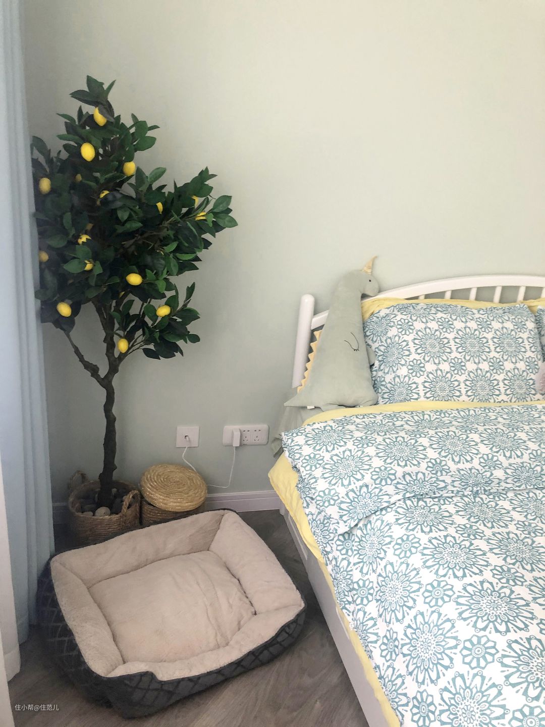 将来有了孩子,靠近窗的宽度足够,把猫窝拿走,还能放下一个窄边的婴儿床,阿姨或者老人过来照顾孩子也比较方便。 等孩子长大一些,再看看是搬家,还是把床换小一些,重新布局儿童房。