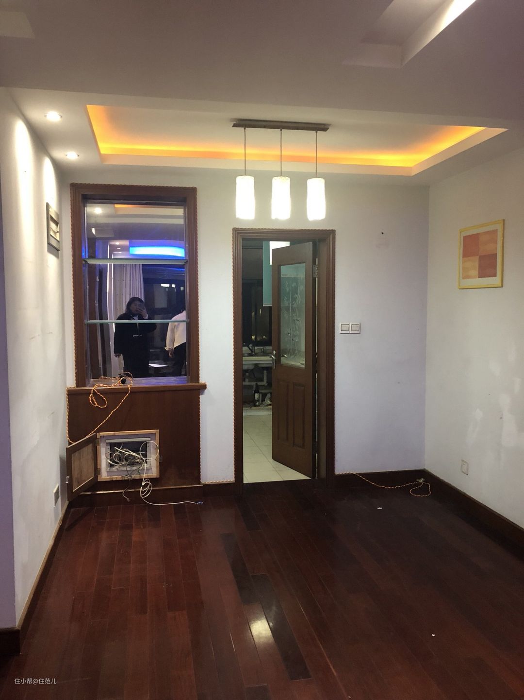 原始的餐厅空间很小,大多数面积都给到了厨房,只能放下小餐桌,除了一个酒柜以外,没有能做收纳的地方。 ▼改造前 灯光的搭配也是很诡异
