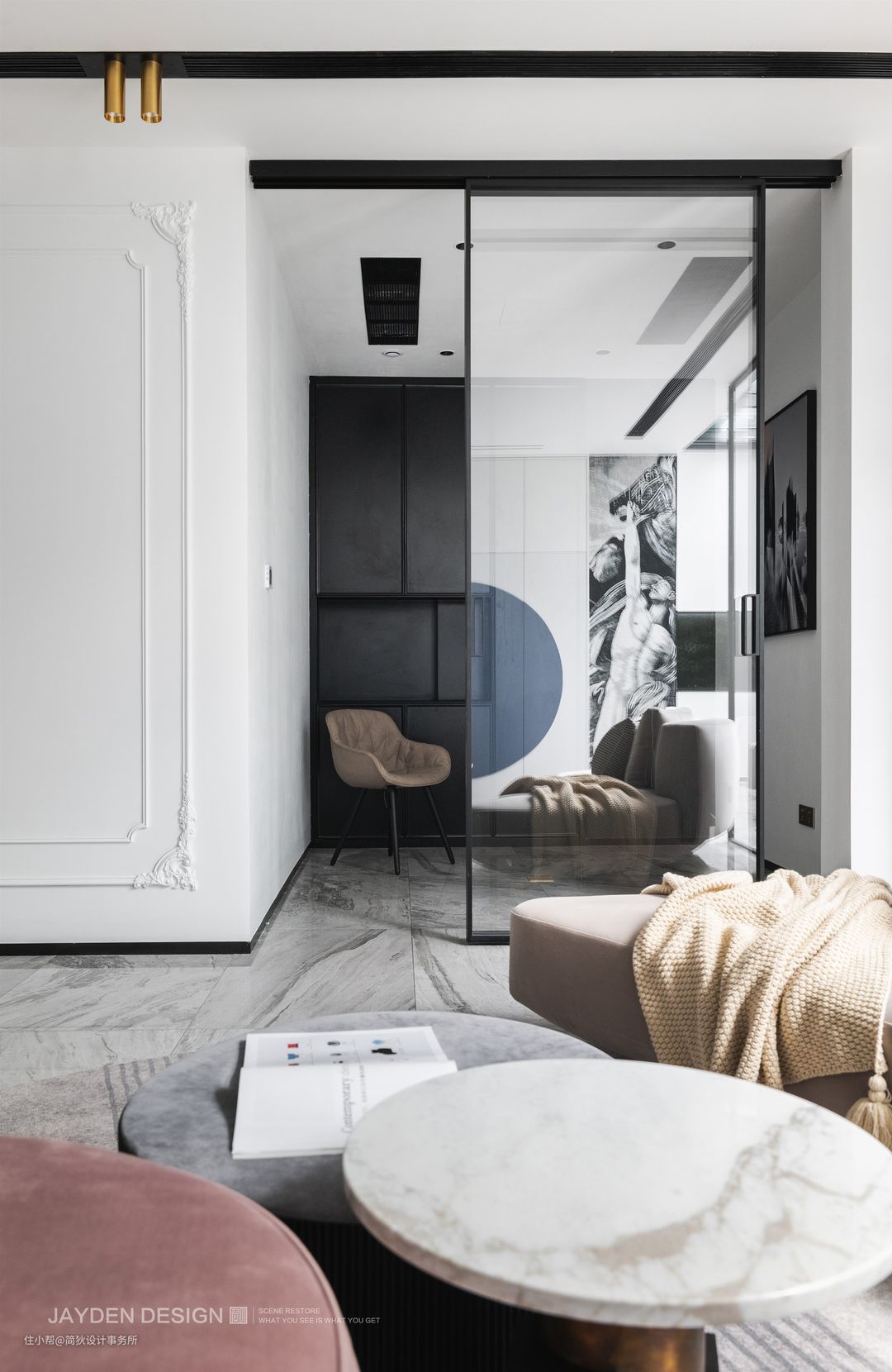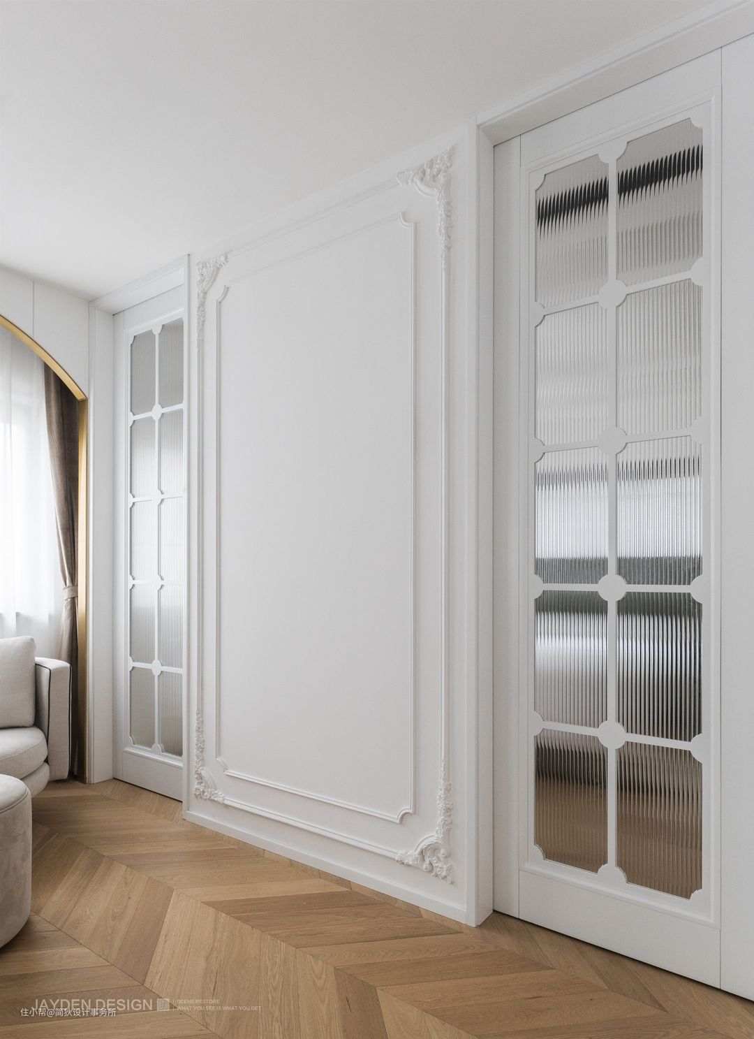 具有Artdeco装饰艺术风格的木质框架搭配超白长虹玻璃移门