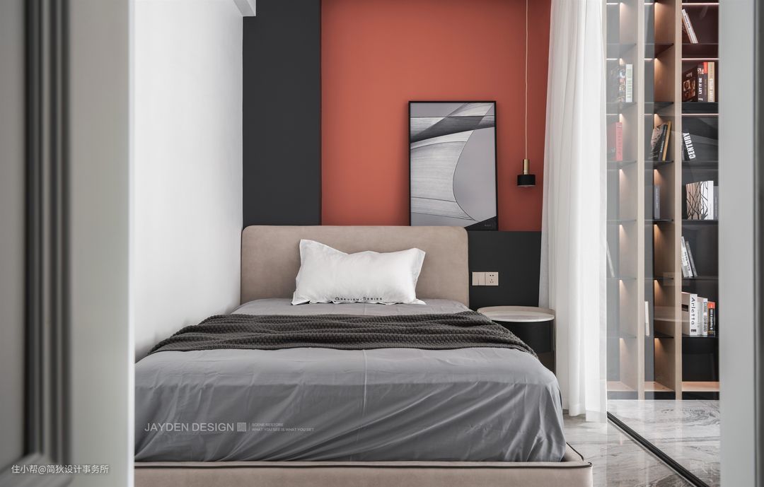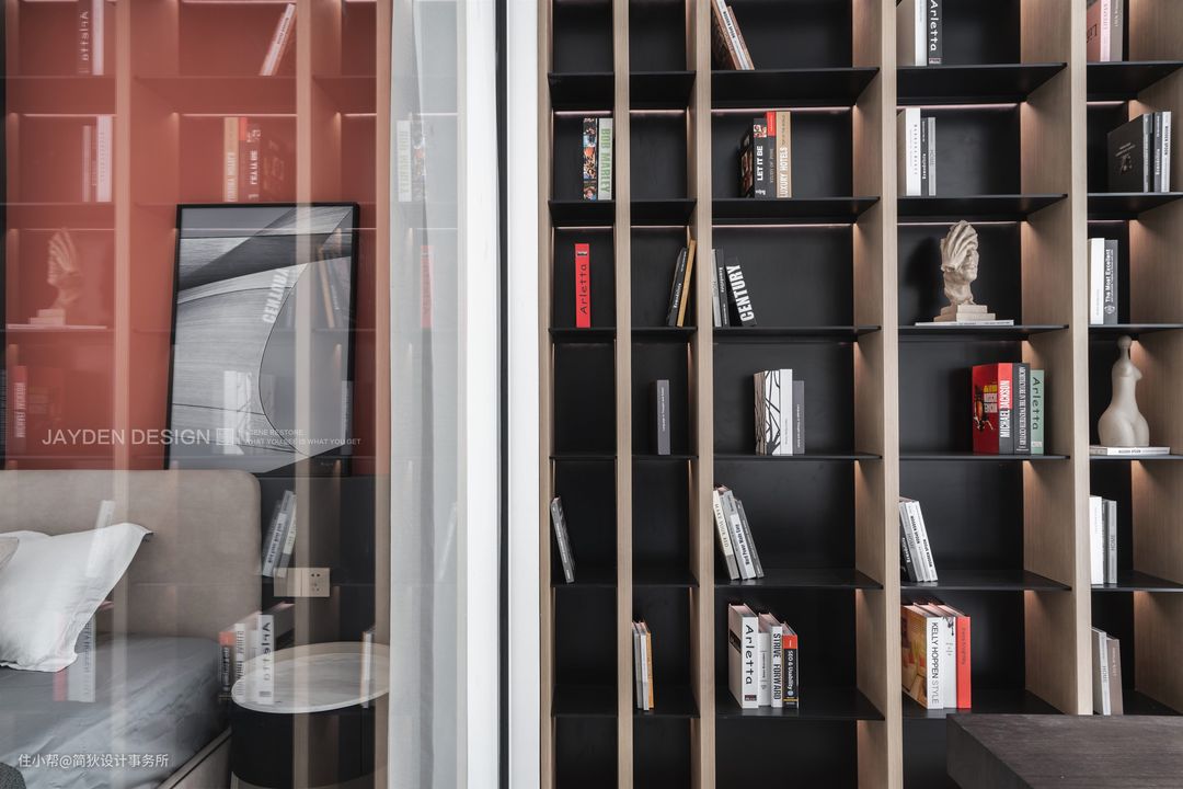 设计师特意为经常加夜班的男主人设计了一间独立书房,并贴心的在书房里规划了睡眠区,避免晚归打扰女主人休息。