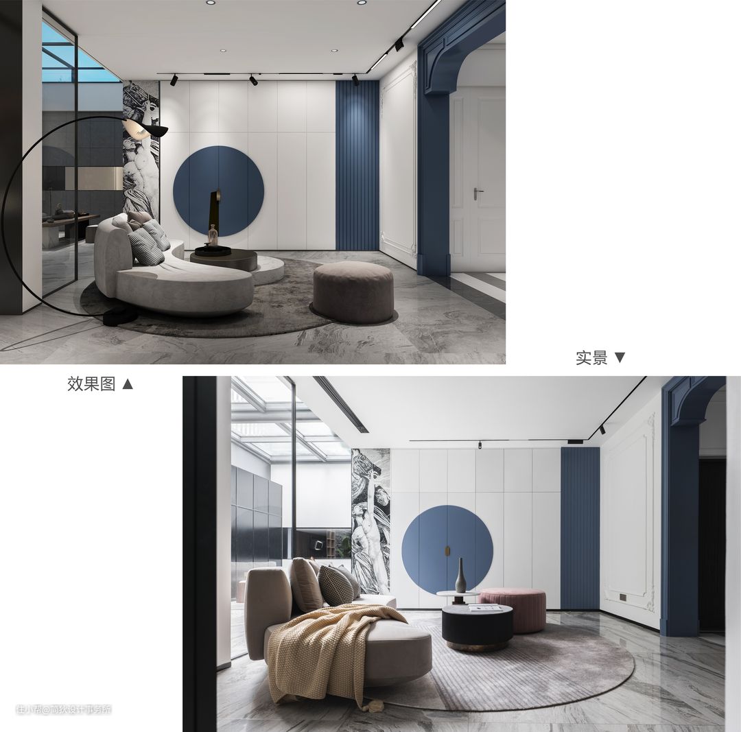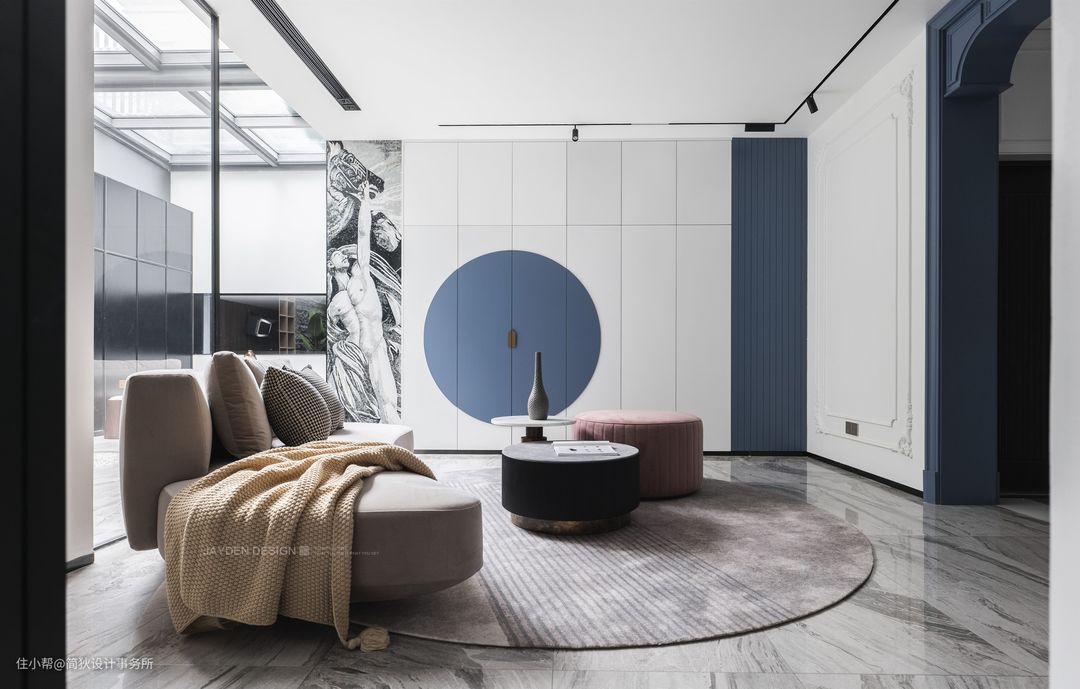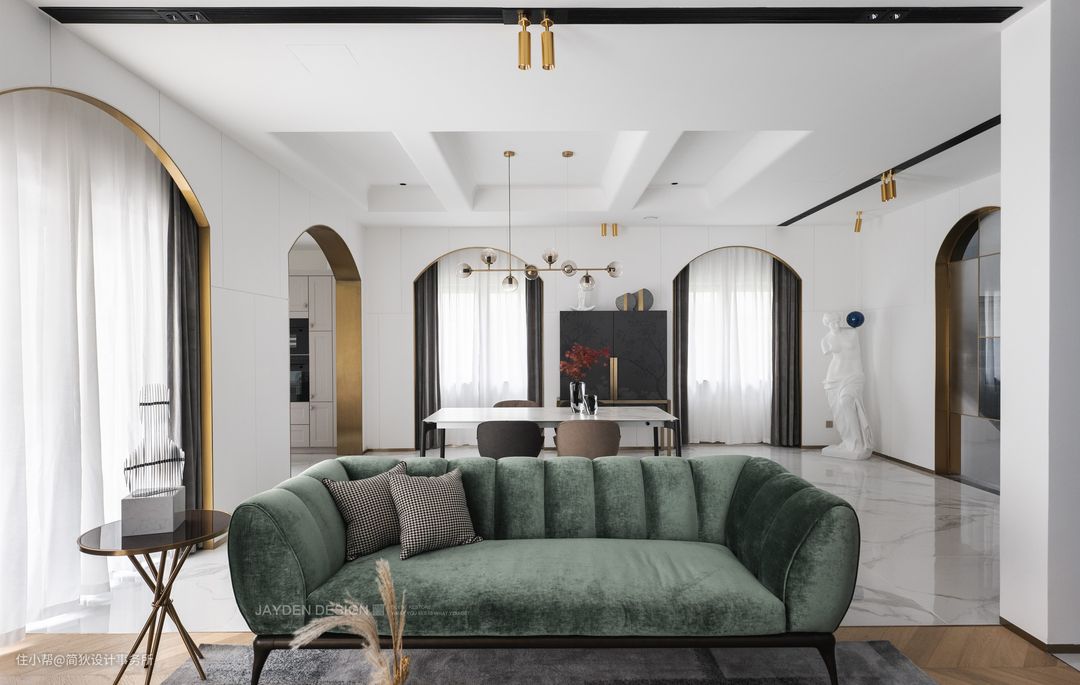 兴起于20世纪二三十年代的Artdeco风格 常以严明的轮廓、几何形体等特征出现 是介于新古典和现代主义之间的一种 时尚而摩登的装饰设计风格 在性冷淡风盛行的当下 本案运用到的色彩竟然多达17余种。 接下来,请看设计师如何玩转色彩吧 ▷▷▷