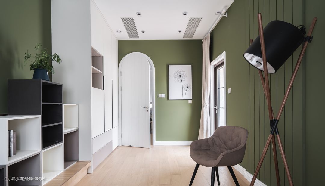 小女儿的房间以牛油果绿为主色调,清新自然充满童趣。