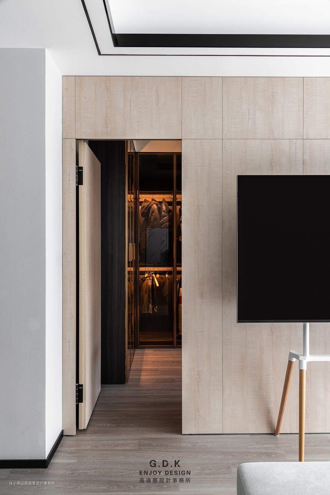 细窄门框+隐形踢脚线内藏灯带的细节,体现一种干净利落的美感。