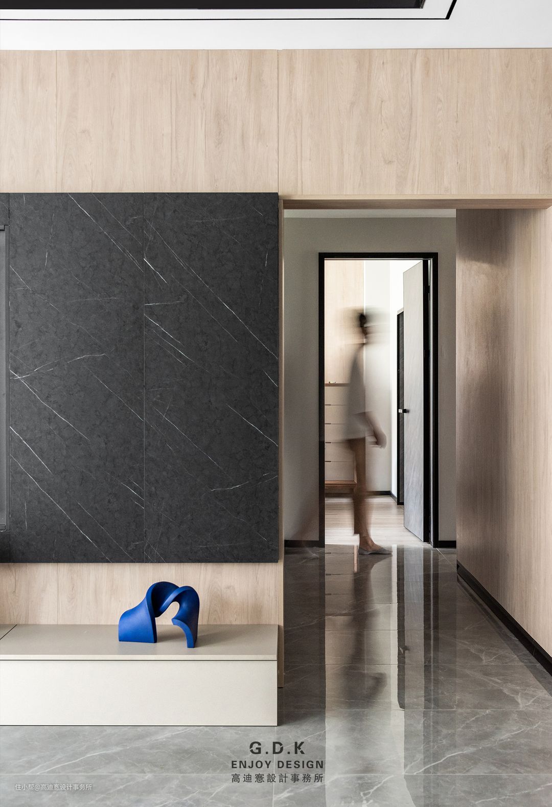 墙面材质的铺成和转换,在空间中持续造景,并向其他区域延伸,沉稳秩序的空间节奏,带来一种平衡的韵律。