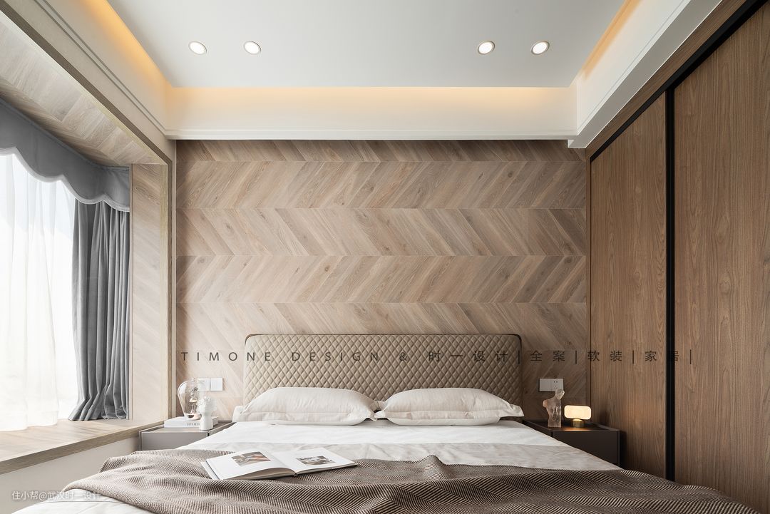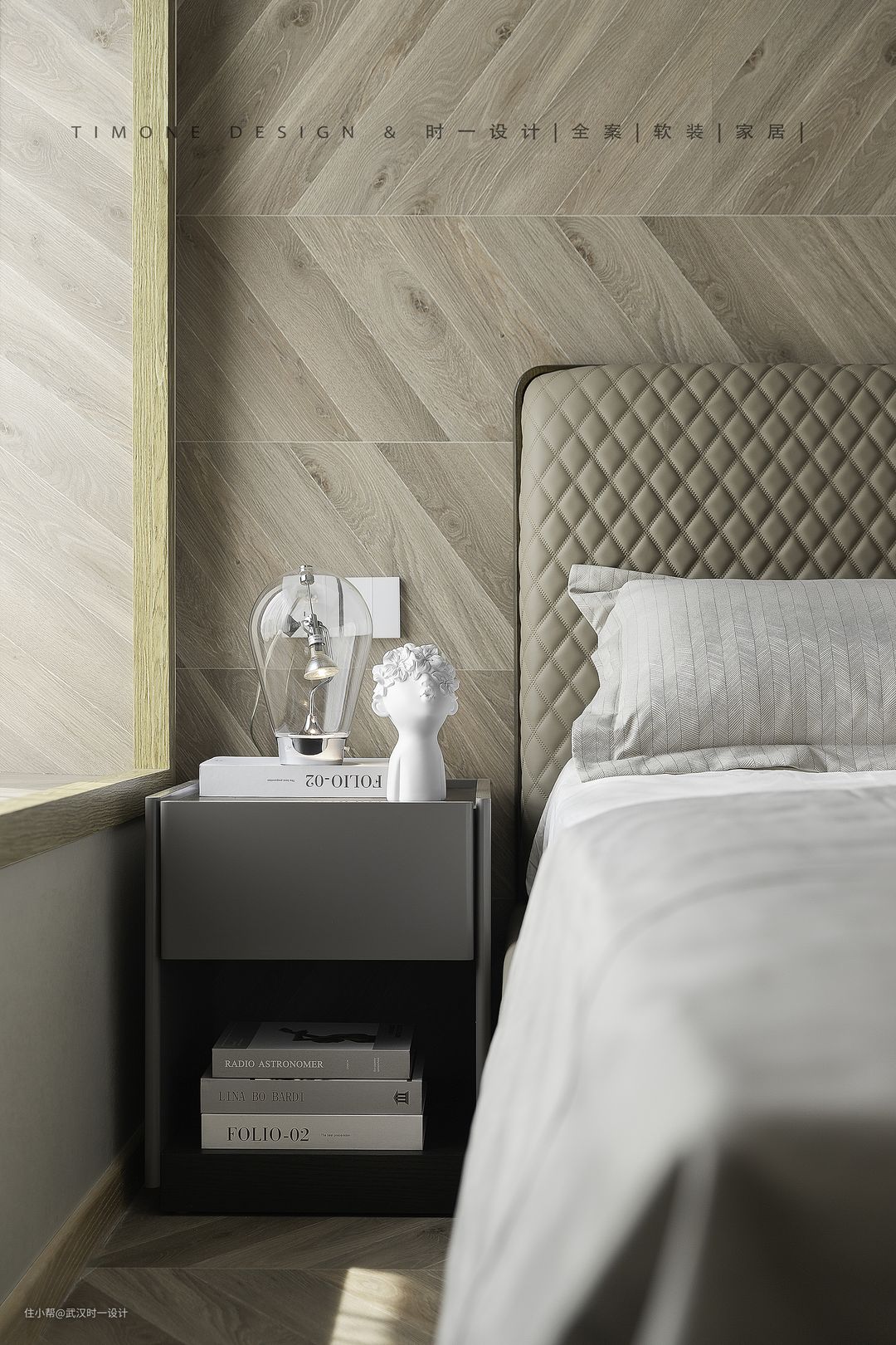 ❑ 步入卧室,地板上墙,配上HOTHING经典款式床型,整个空间简洁而不失雅致与细节感,布艺与木质的搭配,空间更加有趣而温馨。