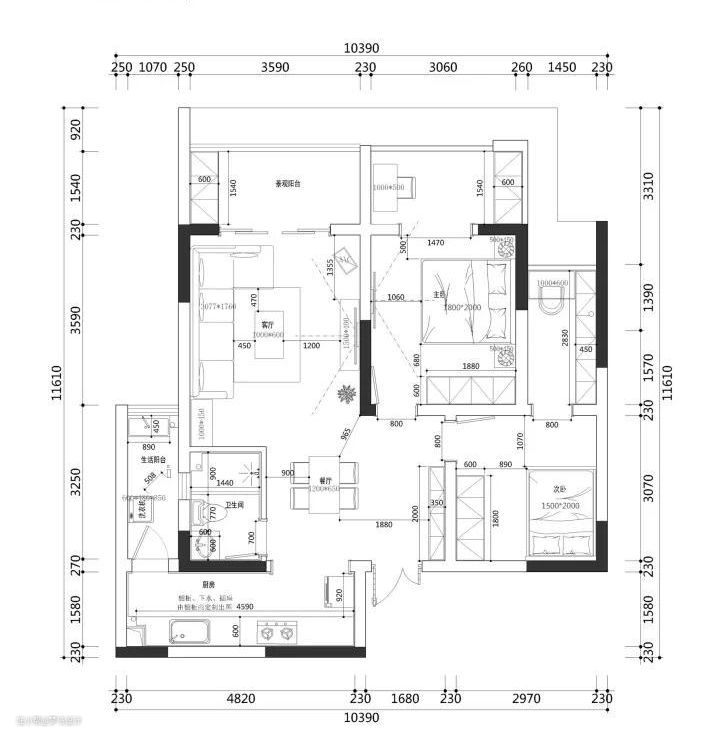 原始结构图 ▲屋内实得面积84平米的两居室,卧室分别居住屋主夫妻2人和父母2人,本套房屋定义为度假房,偶尔回来小憩几日,不需要足够大的空间,却也想走路带风不被磕磕碰碰。