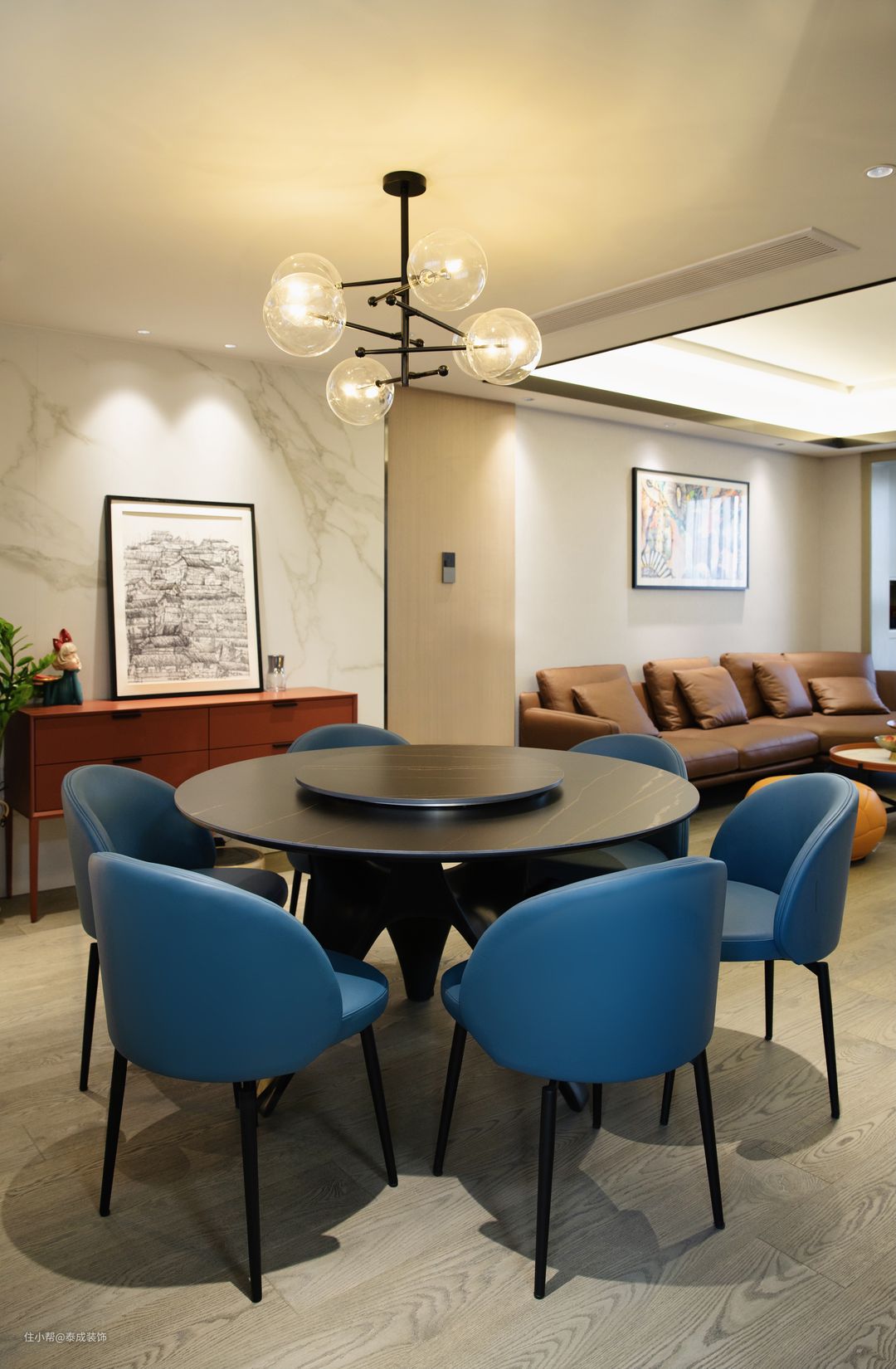 餐厅的这盏吊灯,是家里唯一可见的“大灯”,彰显了餐厅的个性,重点是使餐桌上的饭菜看起来颜色饱满真实,营造出温暖、舒适的就餐氛围。