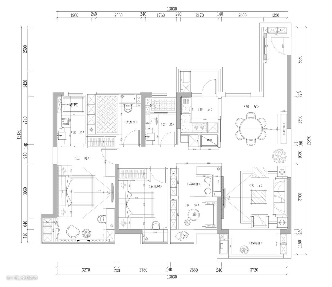 刘生说,基于对孩子成长环境安全性的考虑,且其本人也不太见得各种“犄角旮旯”的空间浪费,所以自己家的设计,就抛开了原户型的牵绊。 于是拆除、连通、 隐藏一套规定动作下来,客餐厅、书房吧台、厨卫走廊等各自相连相通,起承转合,流畅而有序。