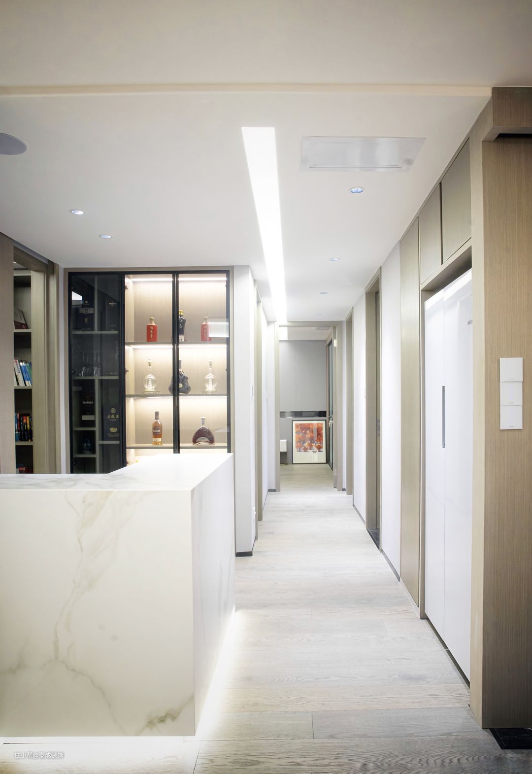 此房在灯光设计上,抛弃了传统的“一盏主灯”的设计方式,利用点状光源和线型灯带来照明。 从厅到卧室,从入户到书房,基本没有采用主灯,这也意味着全屋需要大量的吊顶,用来隐藏各类灯具。