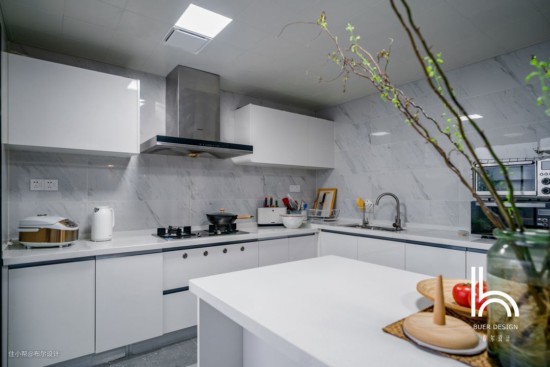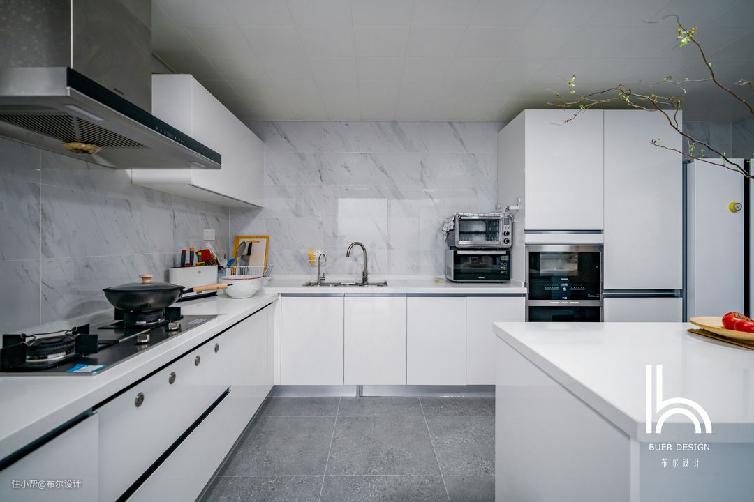 开放式的厨房,纯白色的打造让整个空间显得简约又宽阔;一家人可以一起在这里准备美食,既增加了动手能力,又能够和家人增加多交流的时间。