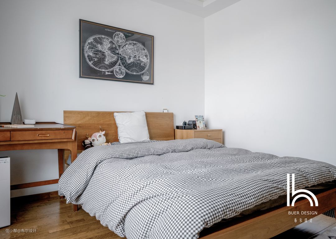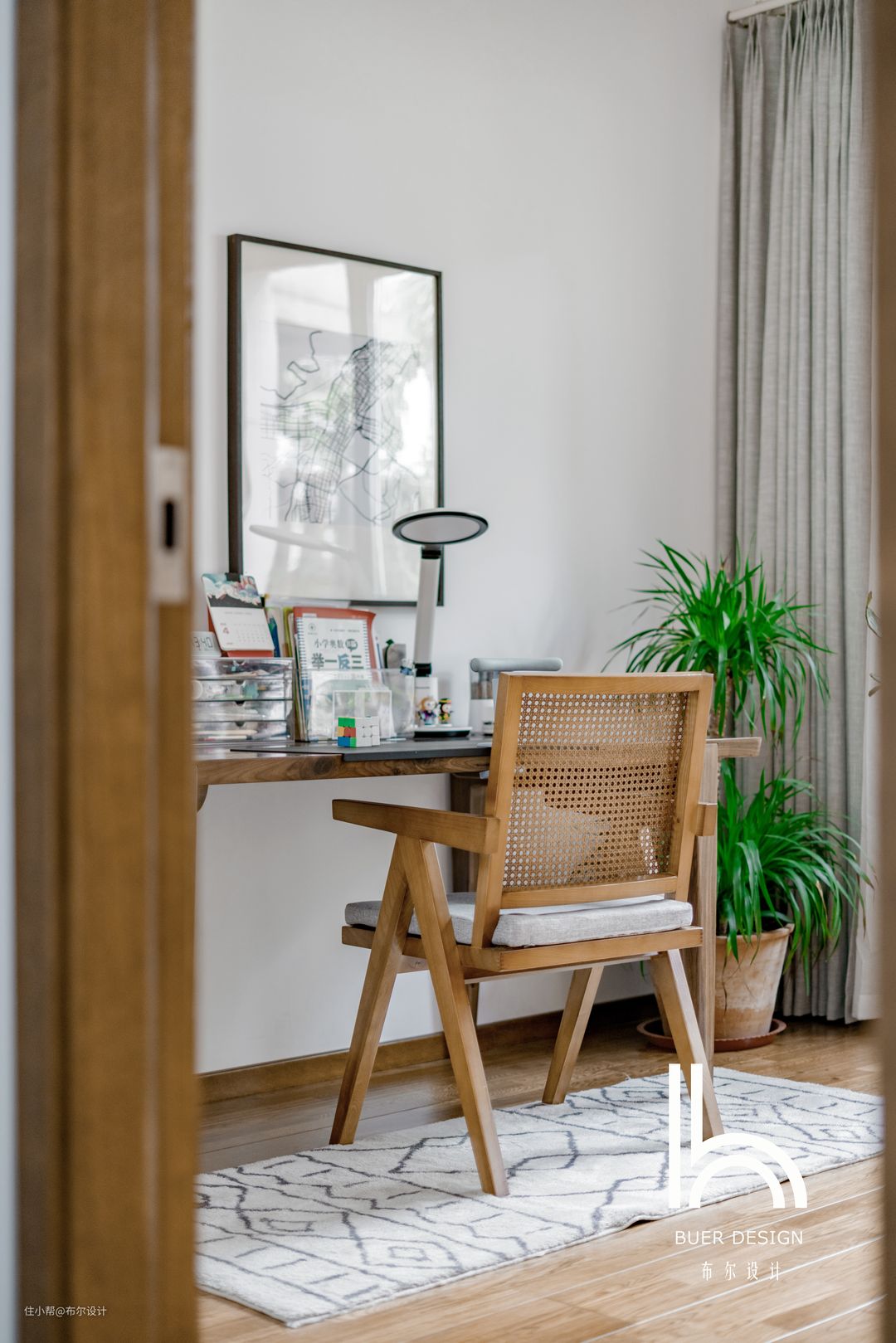 同原木色的风格让整个空间统一,整个书房没有采用常规的大书桌,而是使用了相对较小的书桌,方便小朋友学习画画。
