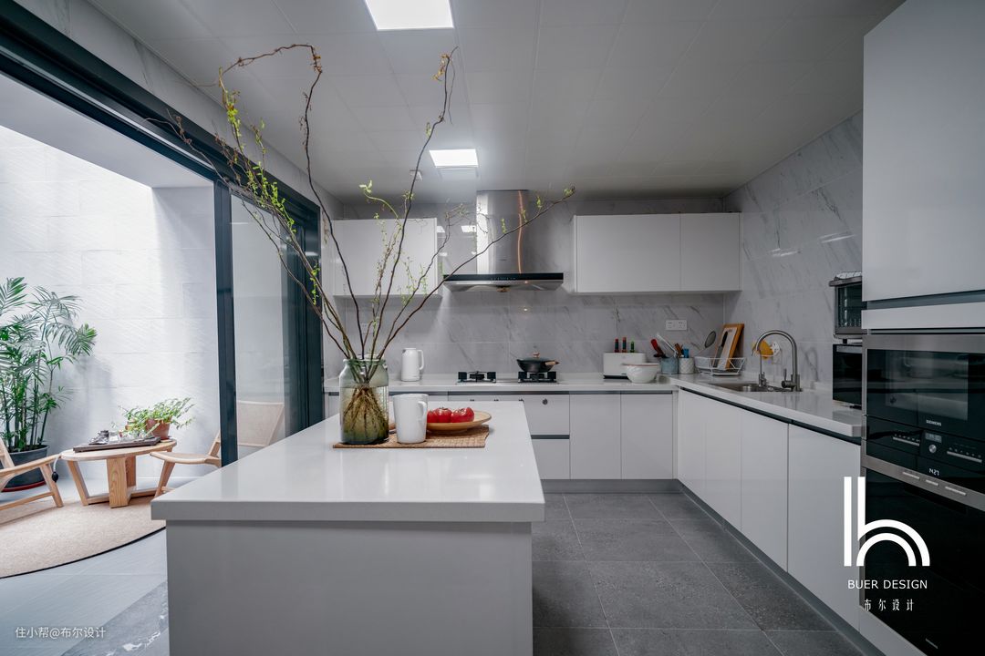 开放式的厨房,纯白色的打造让整个空间显得简约又宽阔;一家人可以一起在这里准备美食,既增加了动手能力,又能够和家人增加多交流的时间。