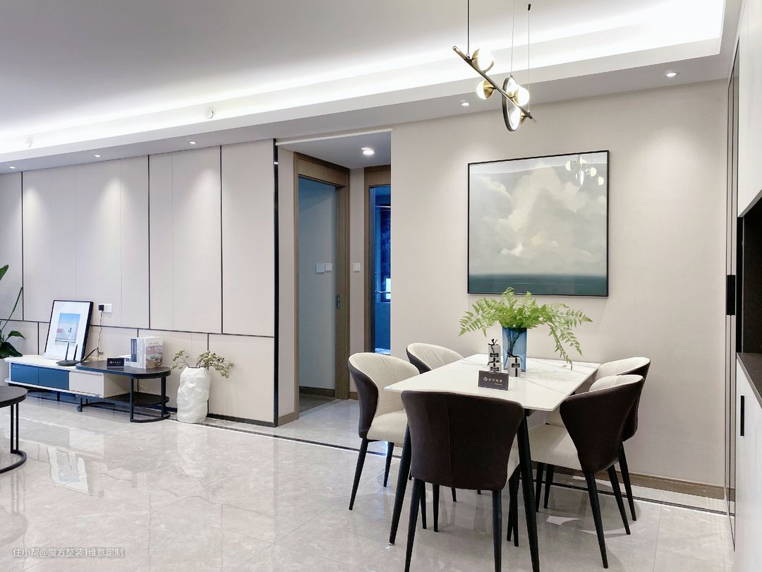 这是成都市郫都区龙湖紫云赋小区8栋的套三112平方的户型。 1,入户右侧餐厅宽度略微偏小,在餐厅设计时候,餐桌采购尺寸不要过长,靠墙摆放,靠墙侧不增加壁柜,增加入户餐厅处的过道宽度; 2,主卧门左侧空间大,有点浪费空间,在此处定制了多功能柜体; 3,飘窗避免了传统的石英石台面飘窗,采用了两侧和台面定制柜体,增加储物空间。