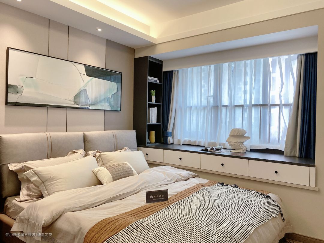 飘窗采用定制储物柜,取消单一的石英石飘窗,空间利用起来