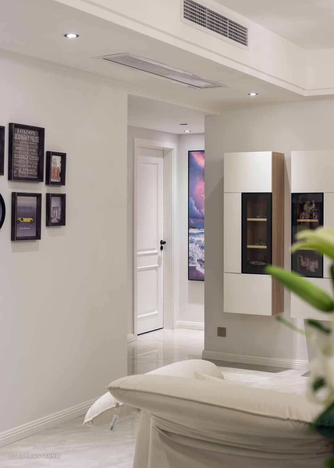 浅色的柜门,搭配暖灰色调的大理石地砖,让原本局促的过道显得更宽敞、通透。