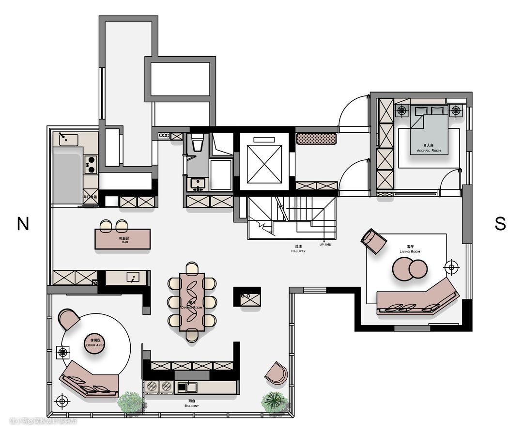 本案位于上海市嘉定区,建筑设计上最大的特色是每家都拥有超级大的空中露台和整面的落地玻璃窗,颇有点第五代住宅的意味。虽然原始结构不够整体,有些细碎,空间没有被最大化利用,且室内顶面的梁也较多,但通过改造后,这些都算不上bug。毕竟可以实现三面落地窗、开阔的大露台、双客厅的户型少之又少。遇到这样先天“资质出众”的房子,对设计师来说也是可遇不可求的幸事。 经过几次接触后,业主和设计师对房子的内部改造达成一致,并高度认可了我们的设计理念。确定了双客厅的设计思路,尽量打开原有结构中的非承重墙体,使室内空间得到大幅扩容。将竖向的楼梯改为横向,被截断的客餐厅实现了南北的贯通。