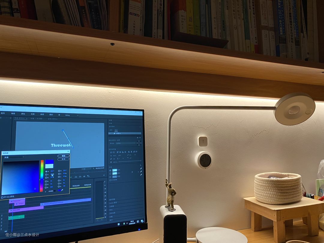 书架下的灯带最后用藏起来,最好是间接照明做到见光不见灯,不然灯光直射眼睛会难受。想想当你靠在椅子休息眼睛被灯光直射的感觉。