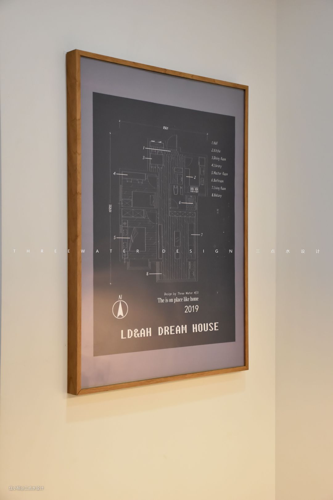 餐厅的墙上挂着设计师为屋主DIY的平面布局装饰画。