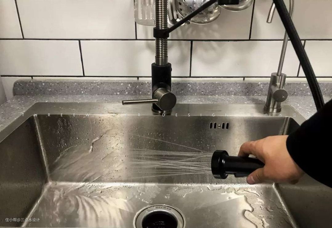 抽拉龙头便于清洗不锈钢水槽的每个角落,台中盆的安装方式更方便清洁。